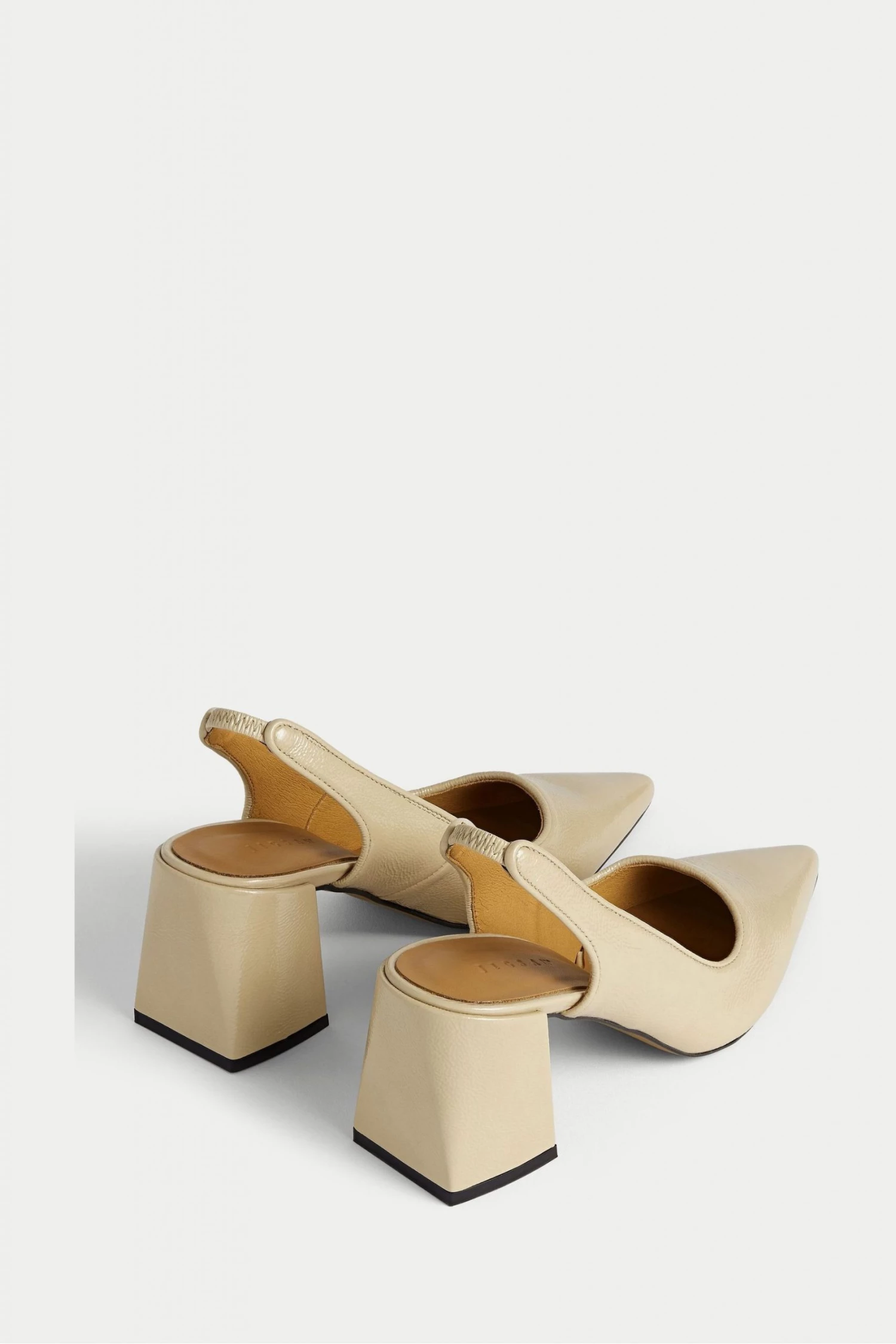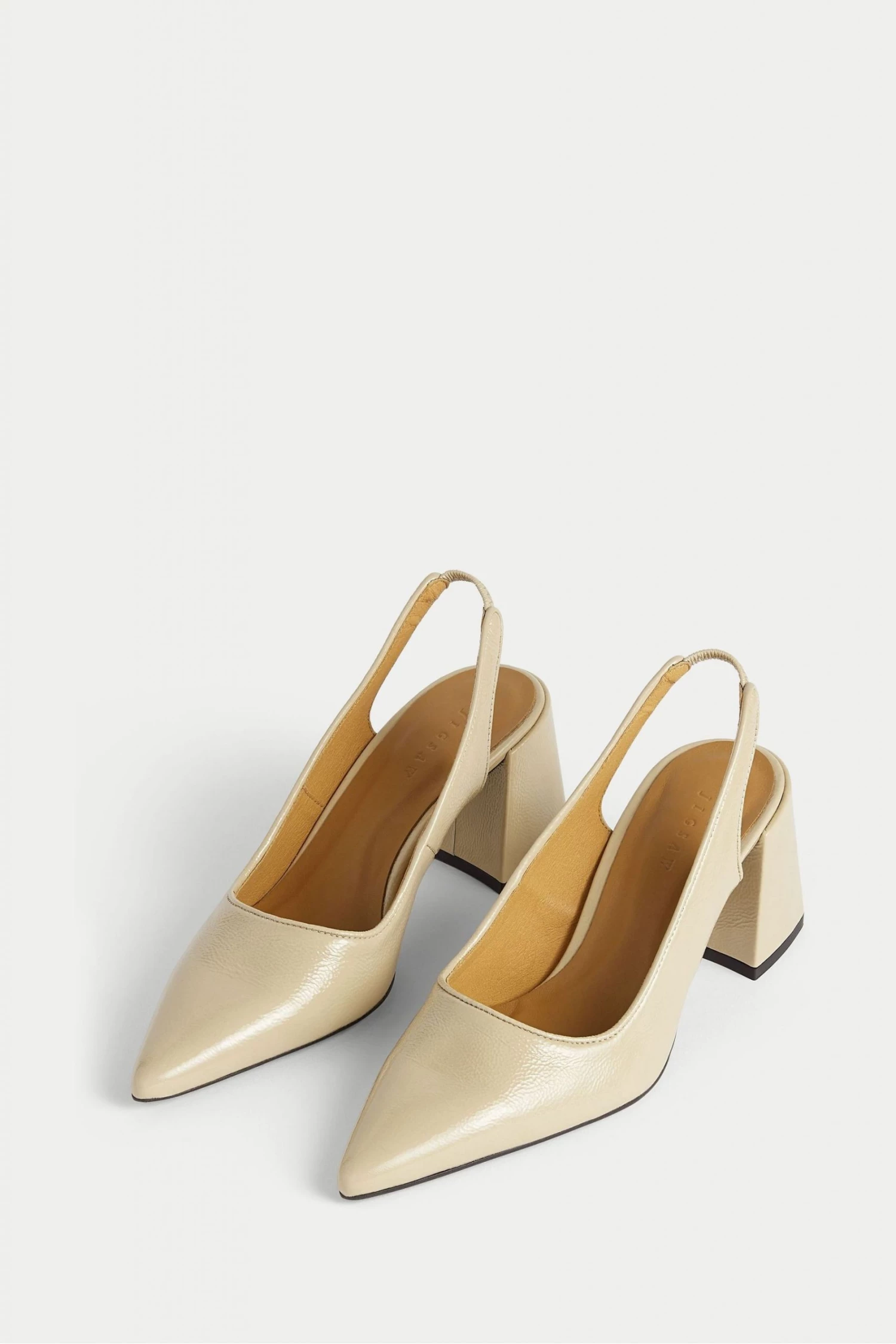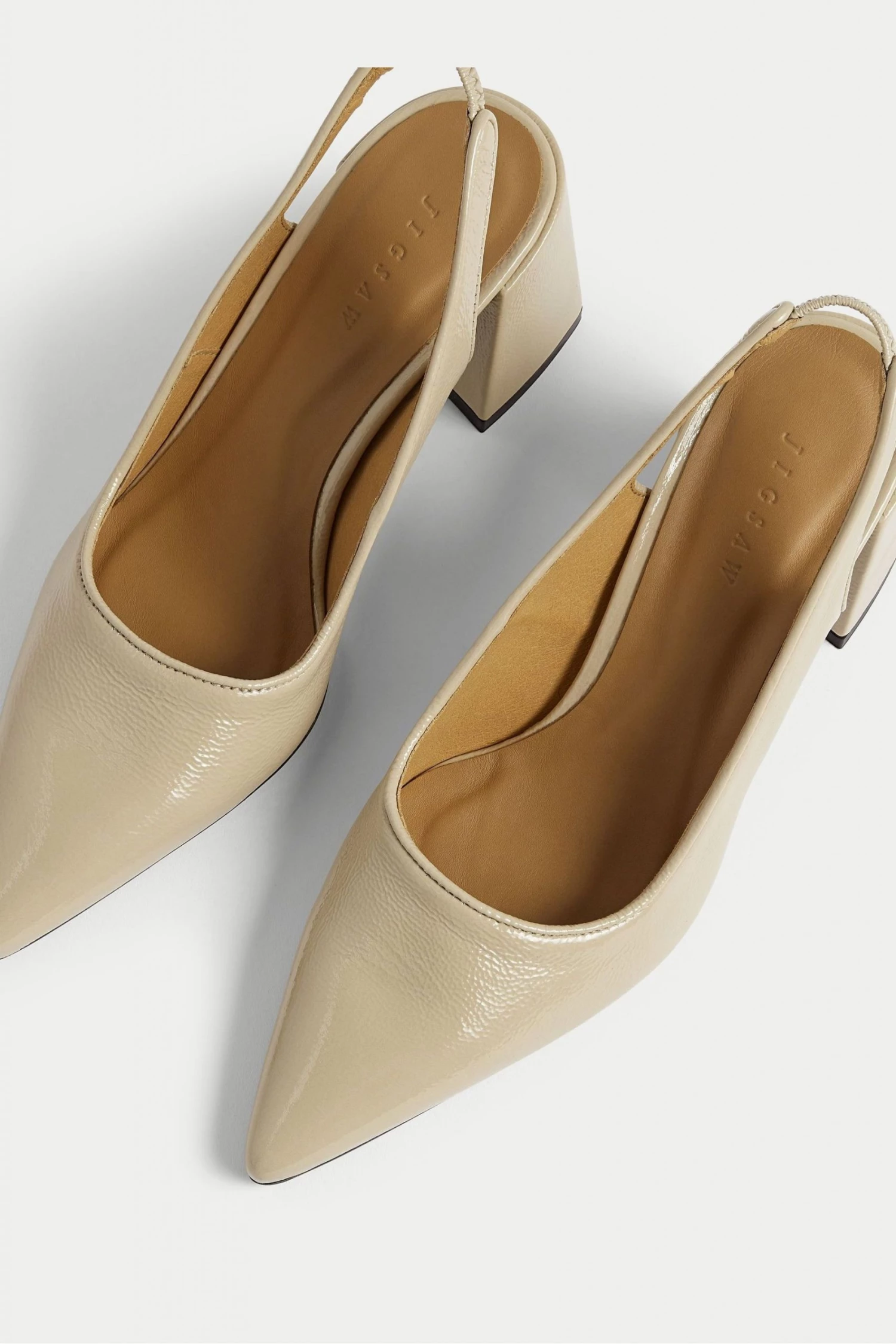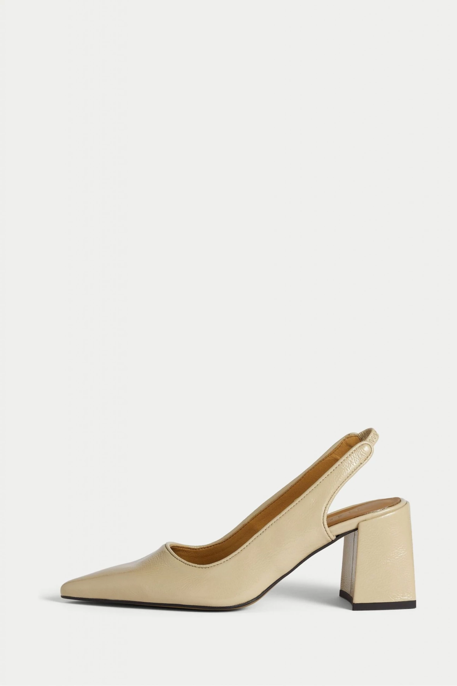 The perfect spring reimagining of their chic pointed court shoe in crinkle patent leather. Slingback with elasticated back to ensure a good fit and a comfortable heel height at 80mm. It’s a beautiful classic that will never get old in your wardrobe. Works with dresses, denim or sharp tailoring alike.