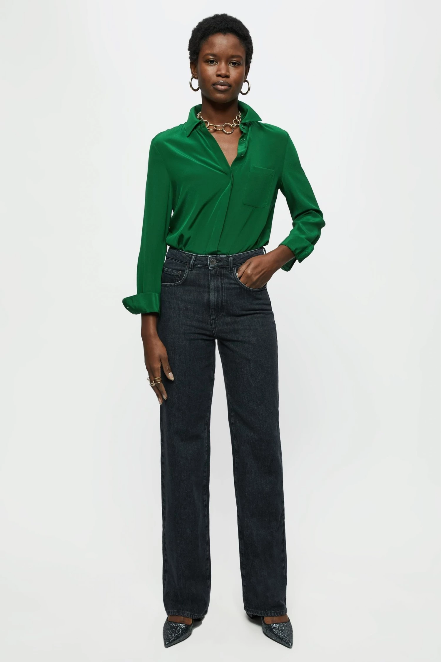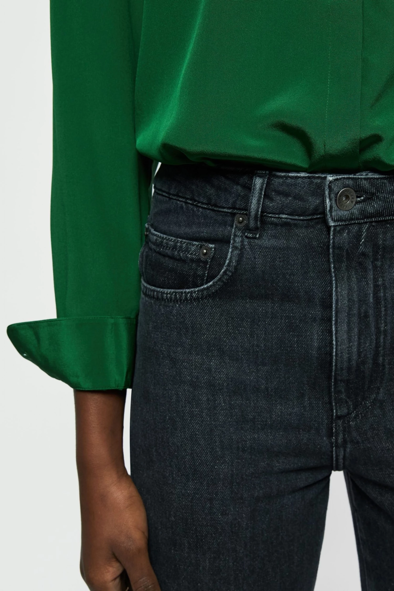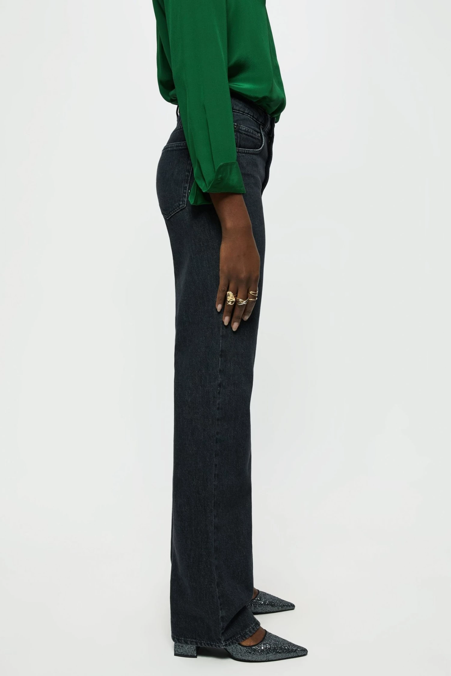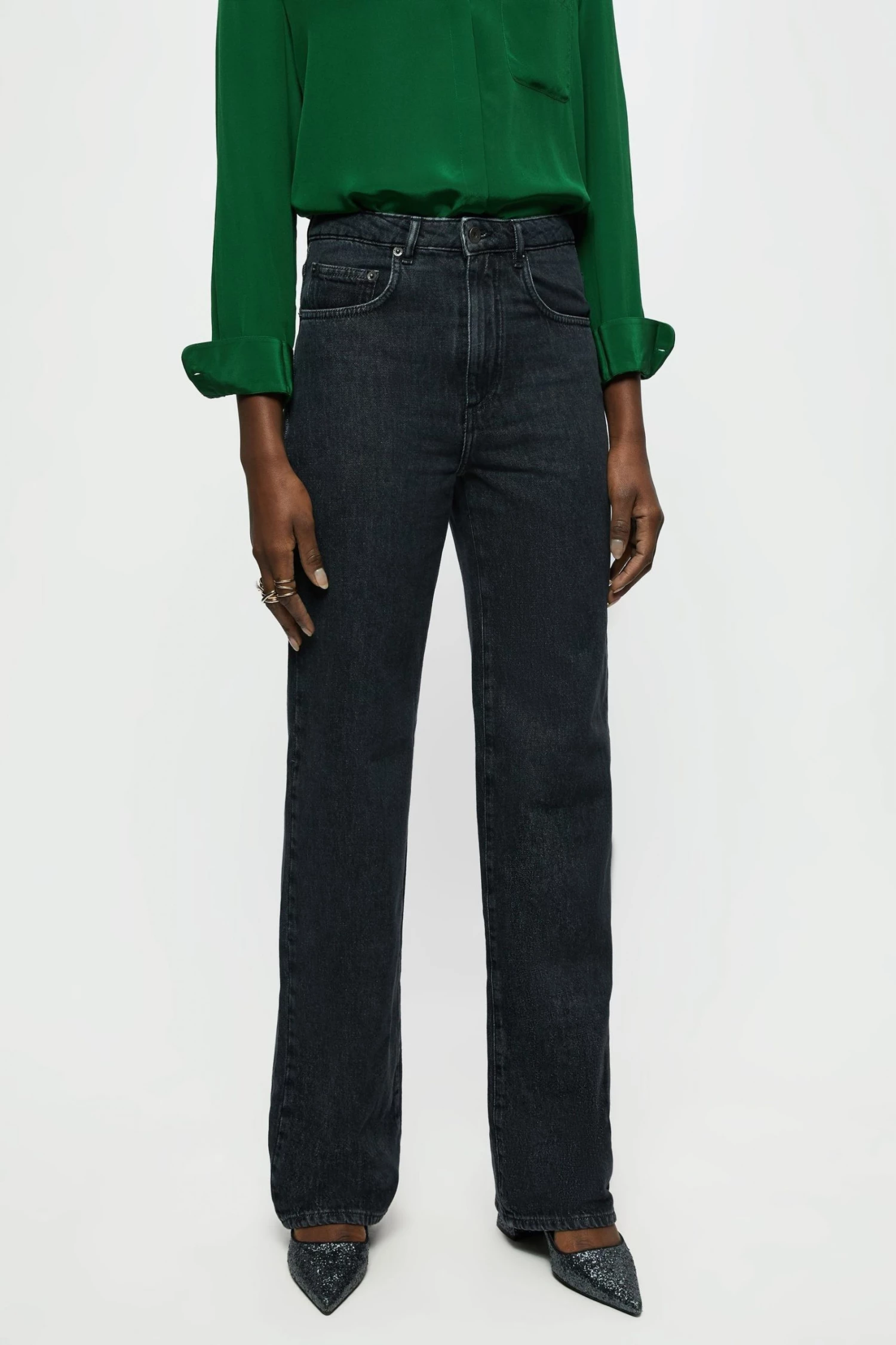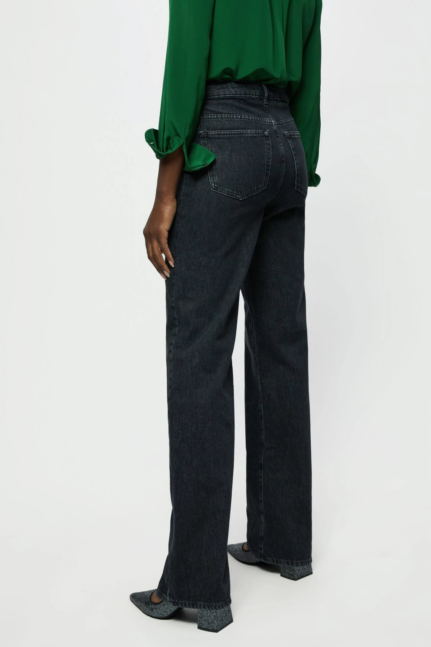 Sustainable full-length jeans with five pockets. Flattering through waist and hips with stylish wide leg silhouette. Discreet zip fly. Made from recycled, non-stretch and soft denim.