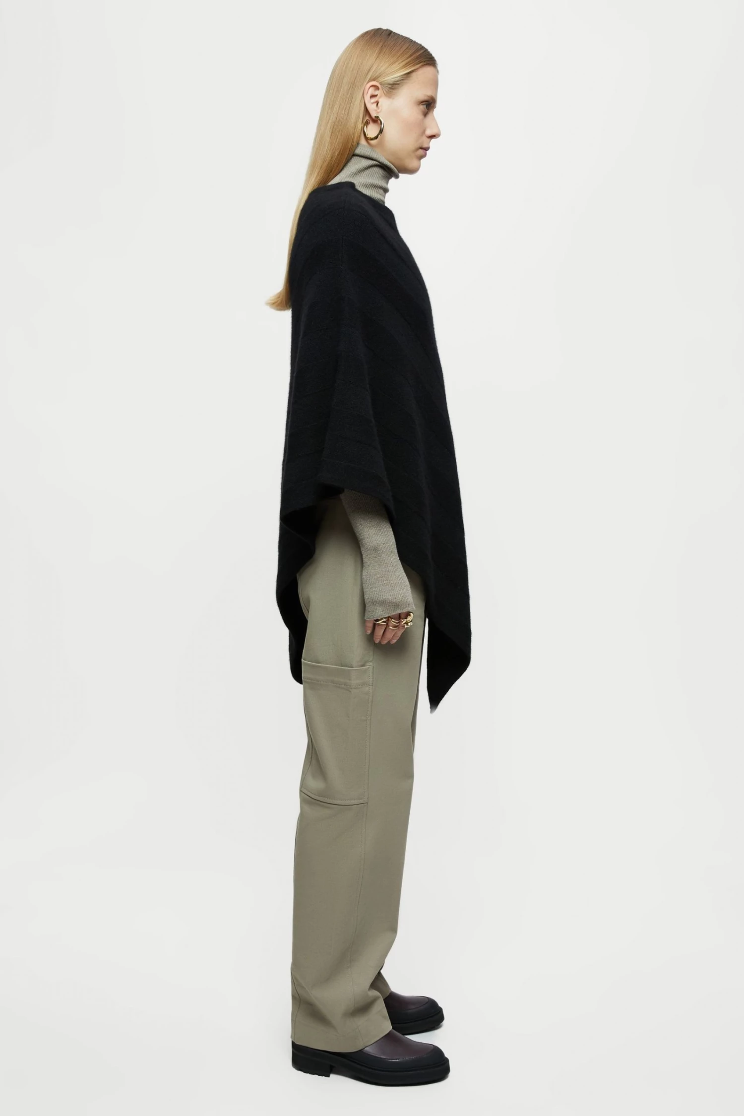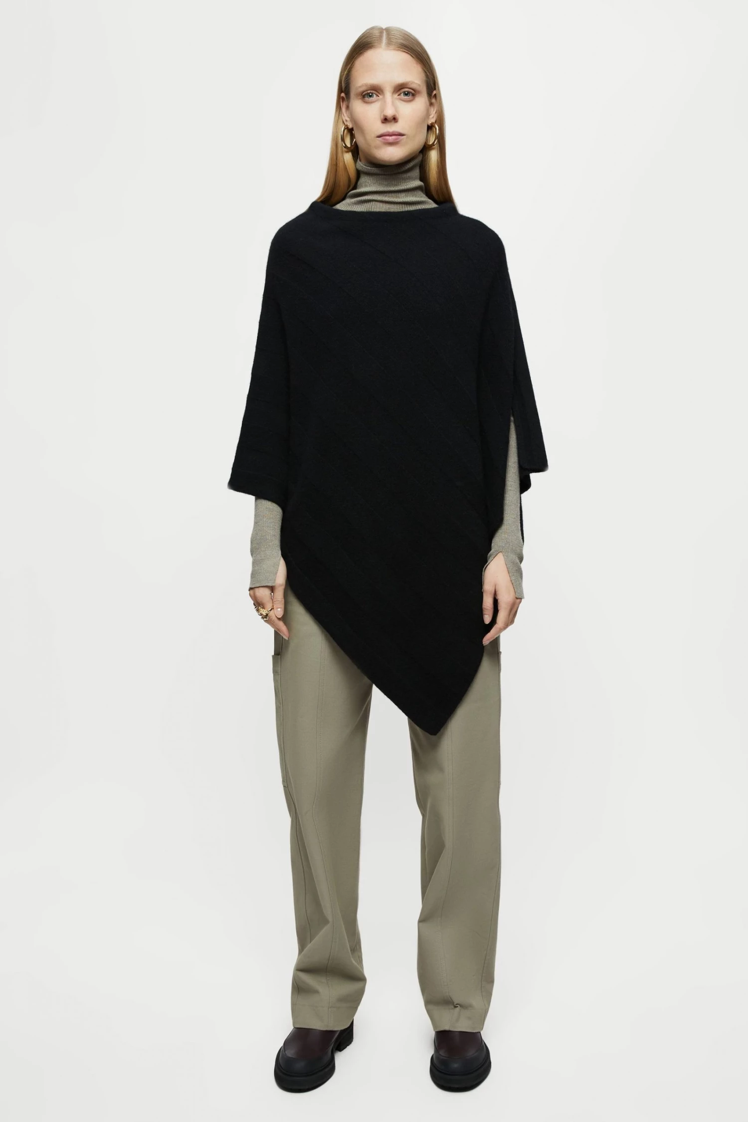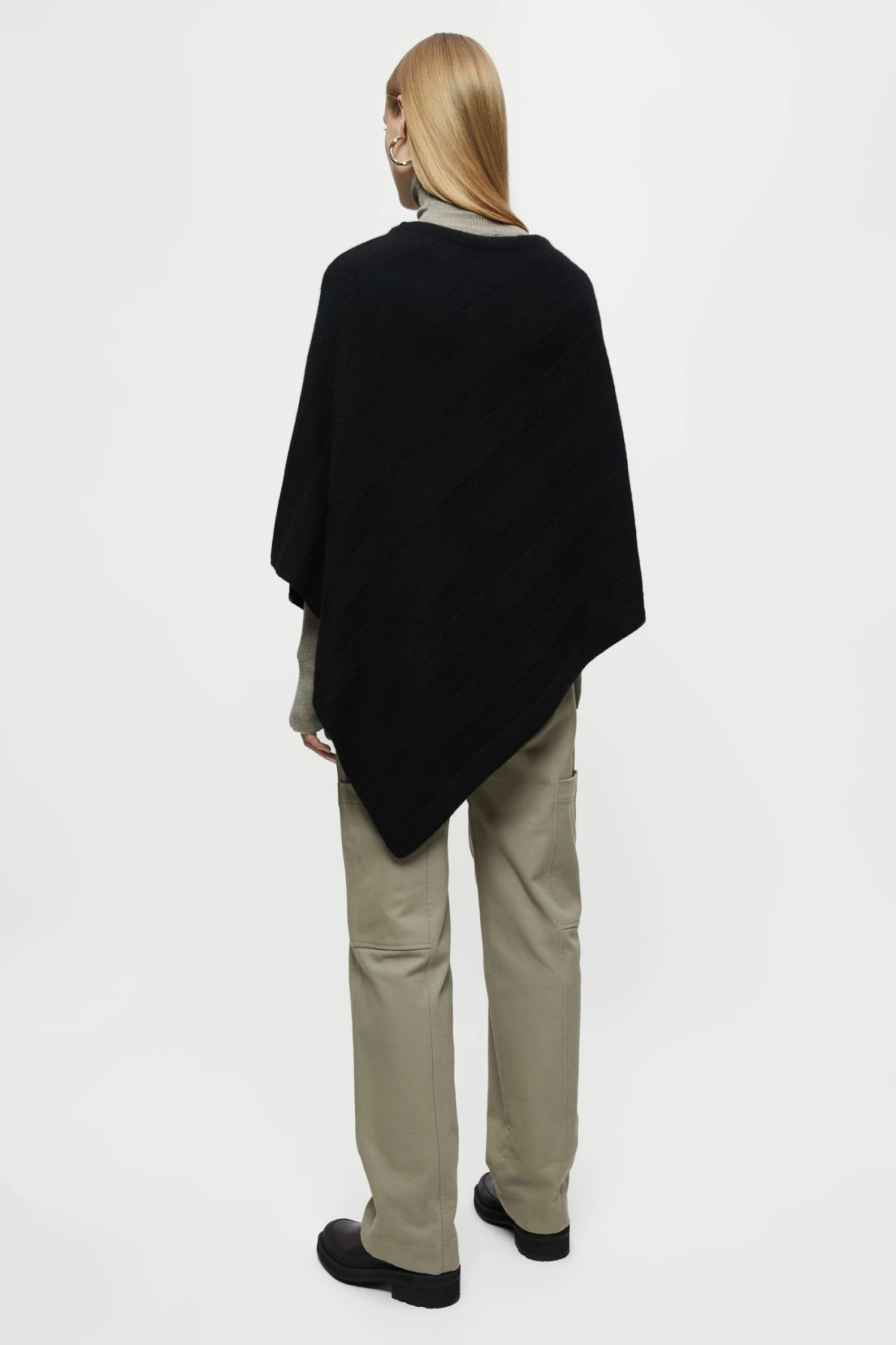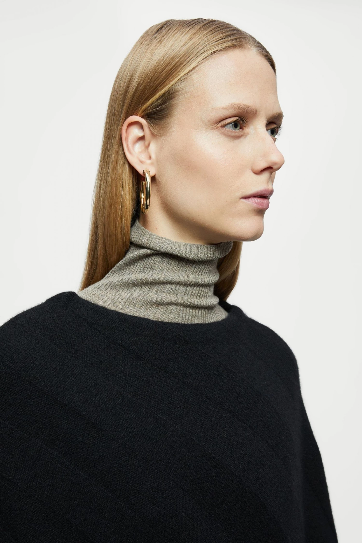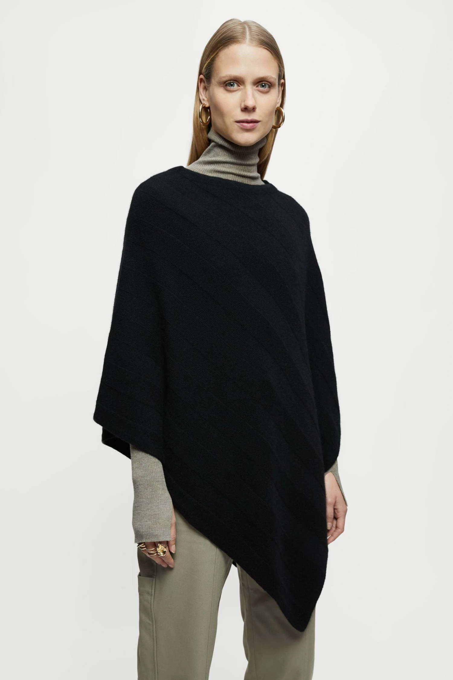 Pure cashmere poncho. Made from fully traceable Mongolian cashmere. Supersoft with a warm and lofty feel. Knitted with a flat rib pattern, this hat becomes a luxurious essential to elevate any outfit.