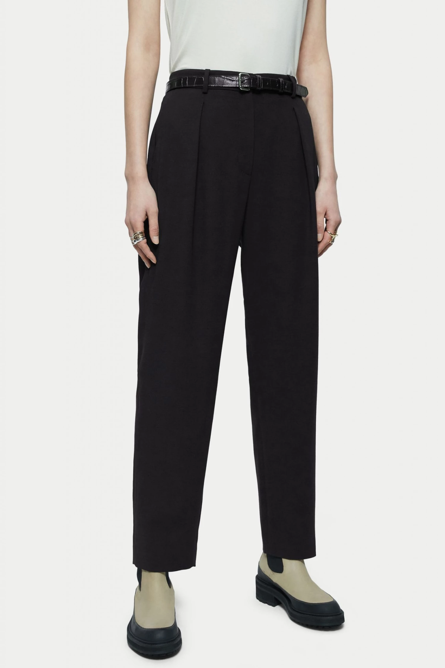 Tailored trouser made from soft blended wool with a twill weave. The Logan trouser is designed with a pleat front and tailored waistband. Featuring a zip fastening with hook and bar detail and functional side pockets.