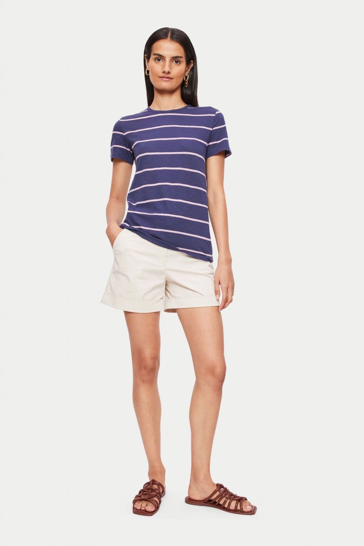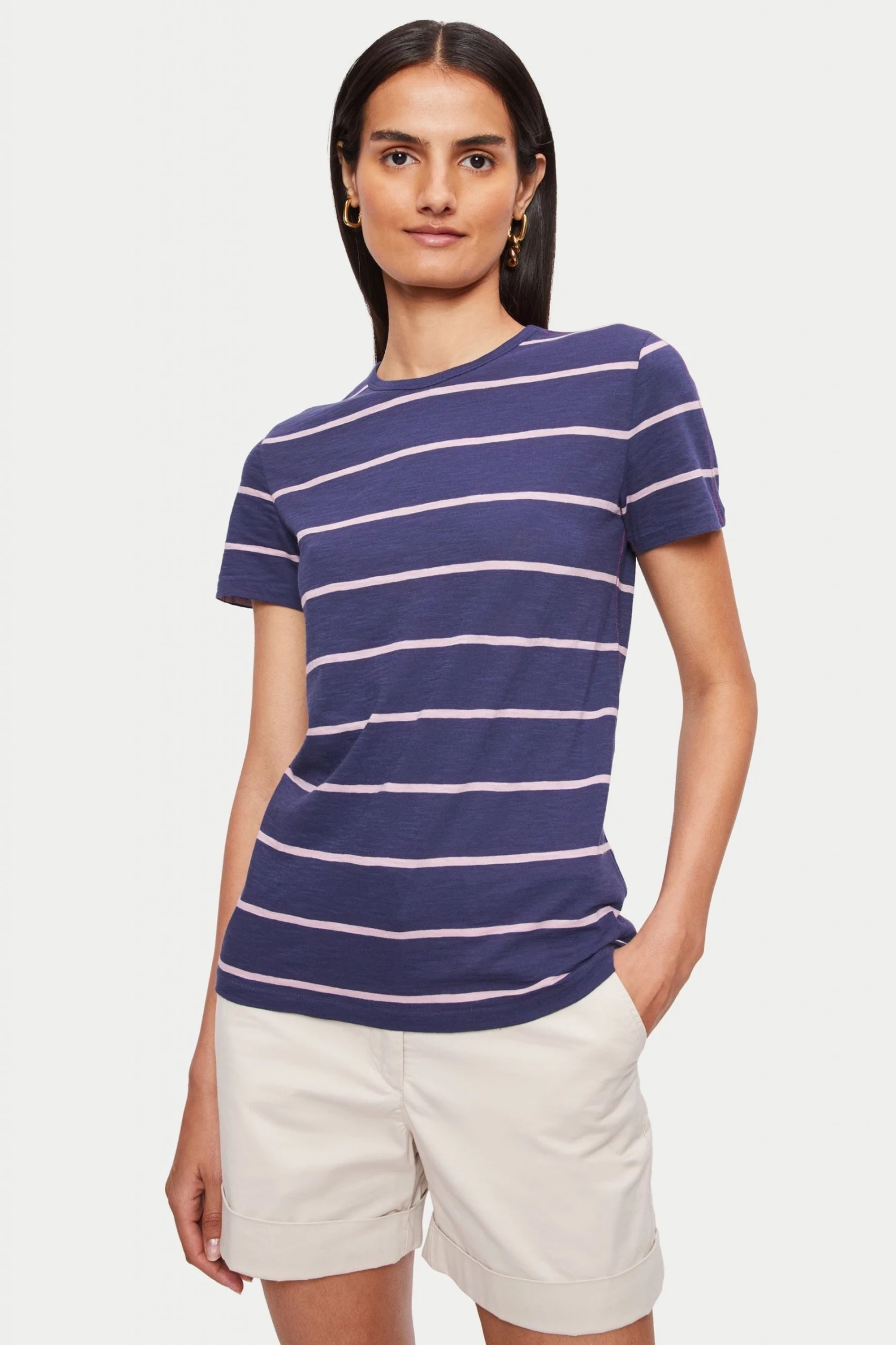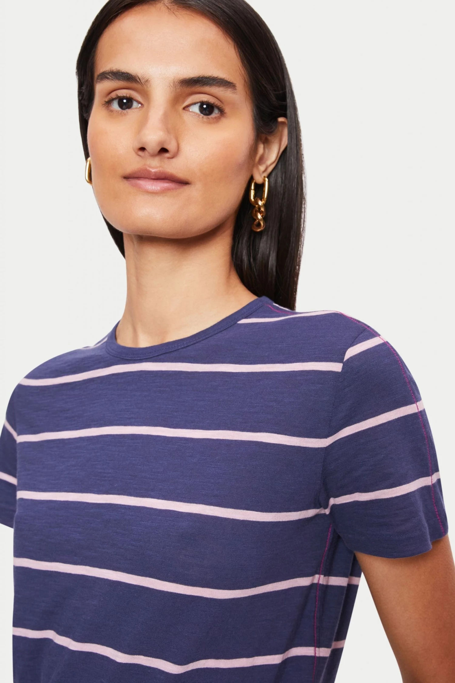 Stripe short sleeve t-shirt with seam details. Cut in a classic easy fit crew neck shape from lightweight cotton slub jersey. This lightweight T-shirt styles effortlessly with denim or gives a relaxed feel to loose summer tailoring.