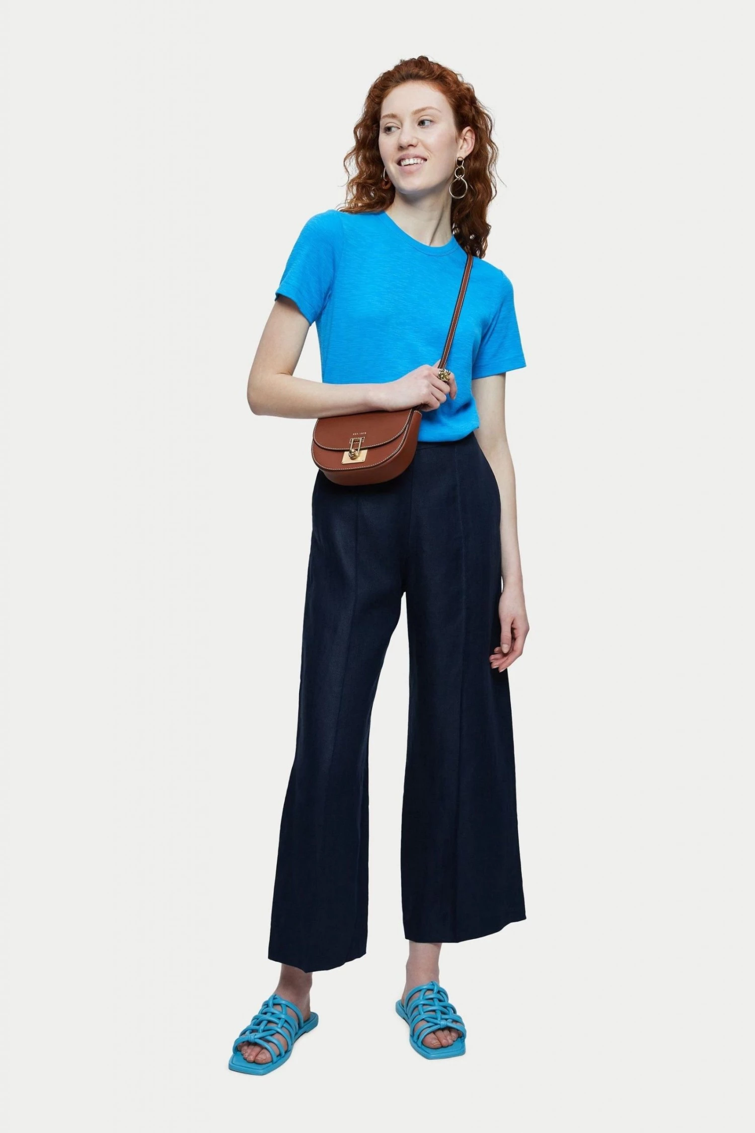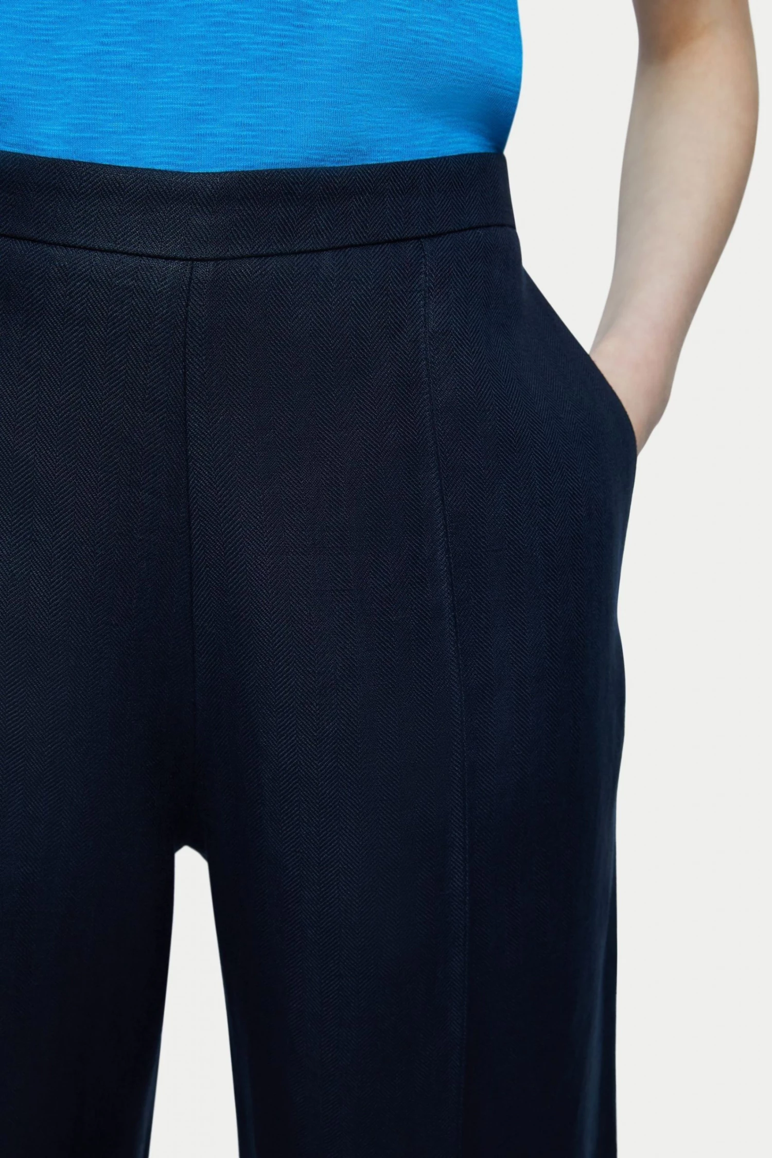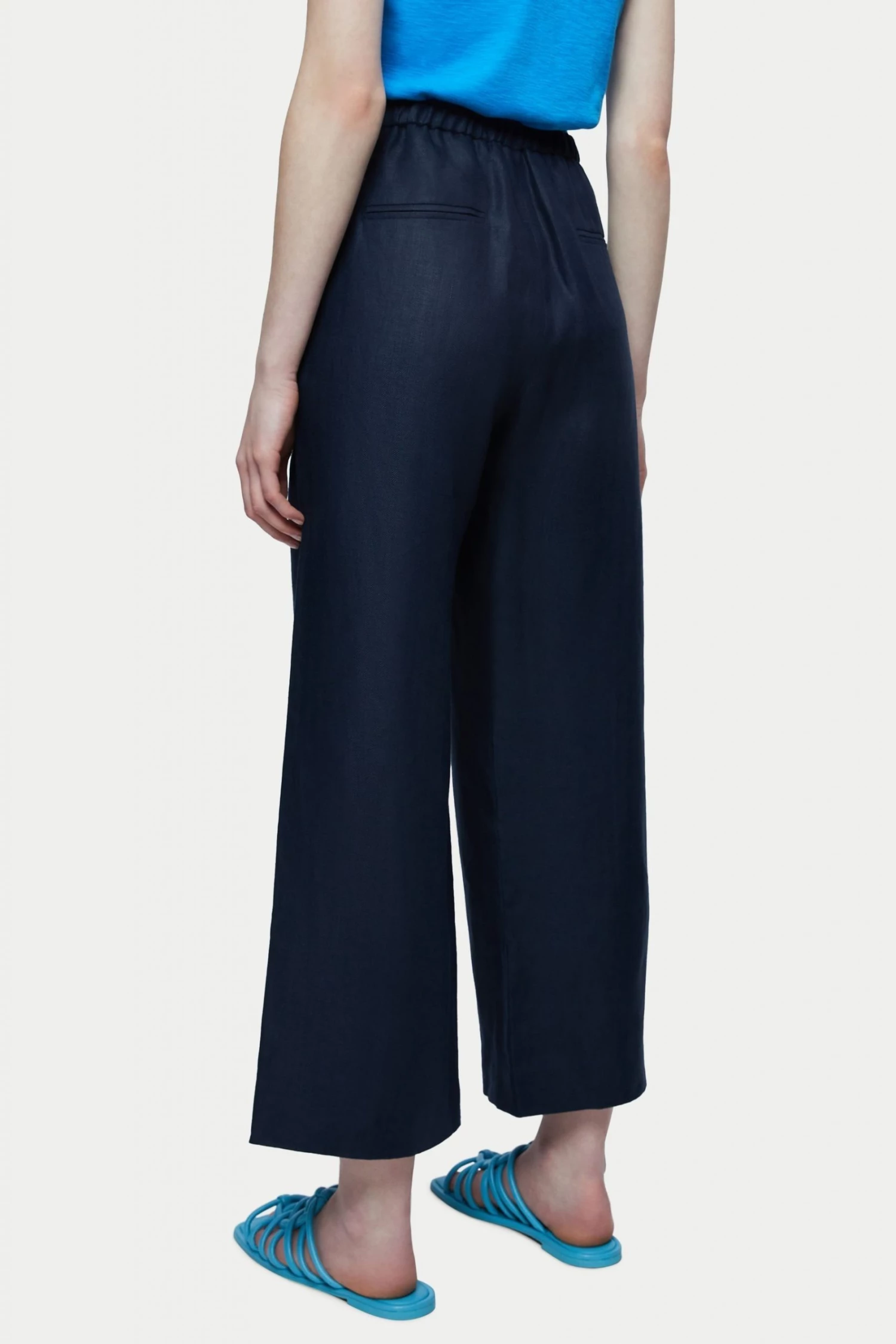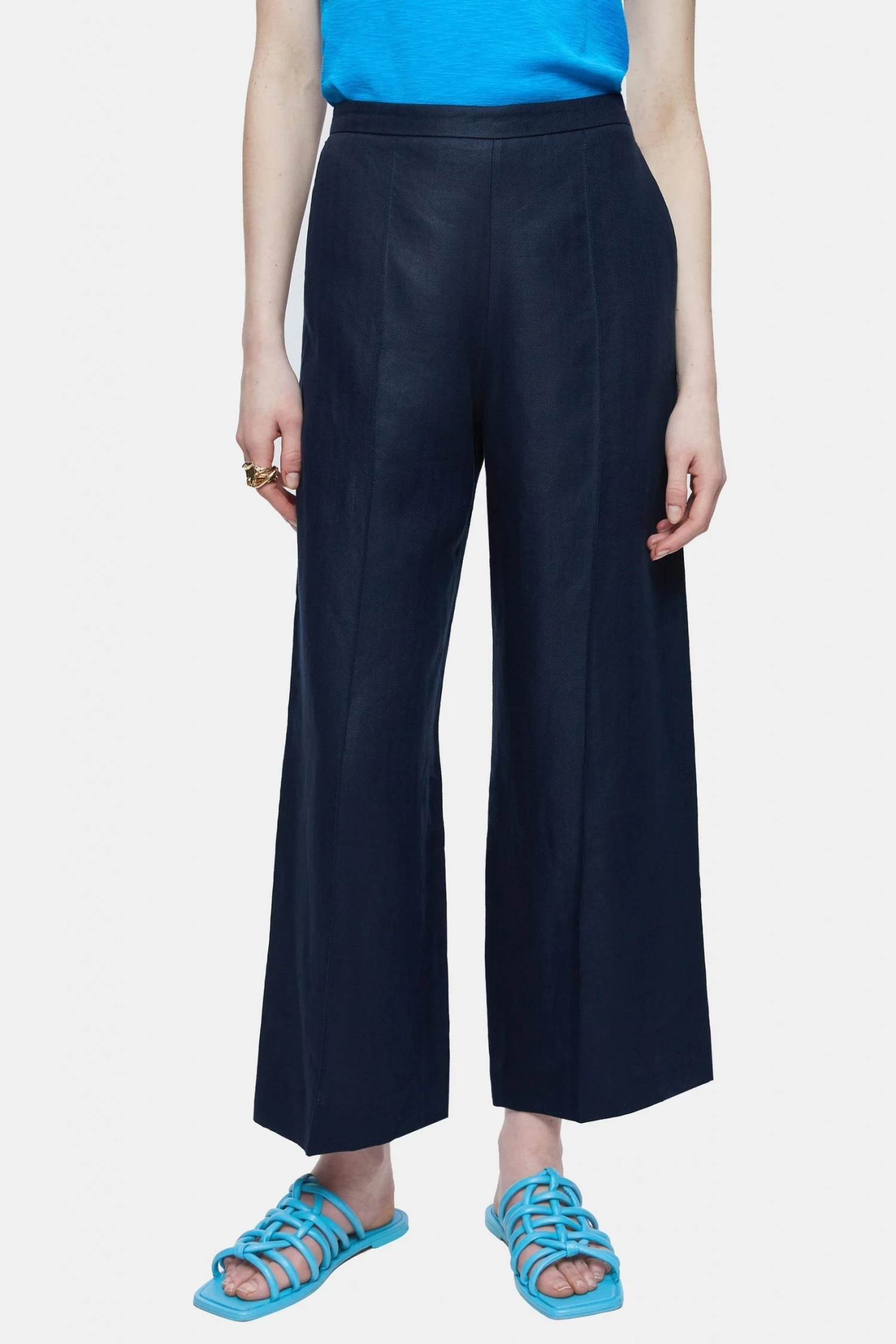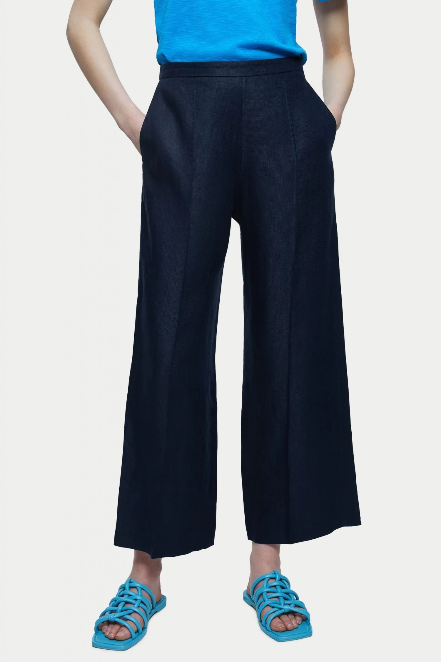 Cropped palazzo trouser in Irish herringbone linen. Relaxed fit with an elastic back waistband and practical side pockets. A beautiful smart casual trouser, style with trainers or sandals.