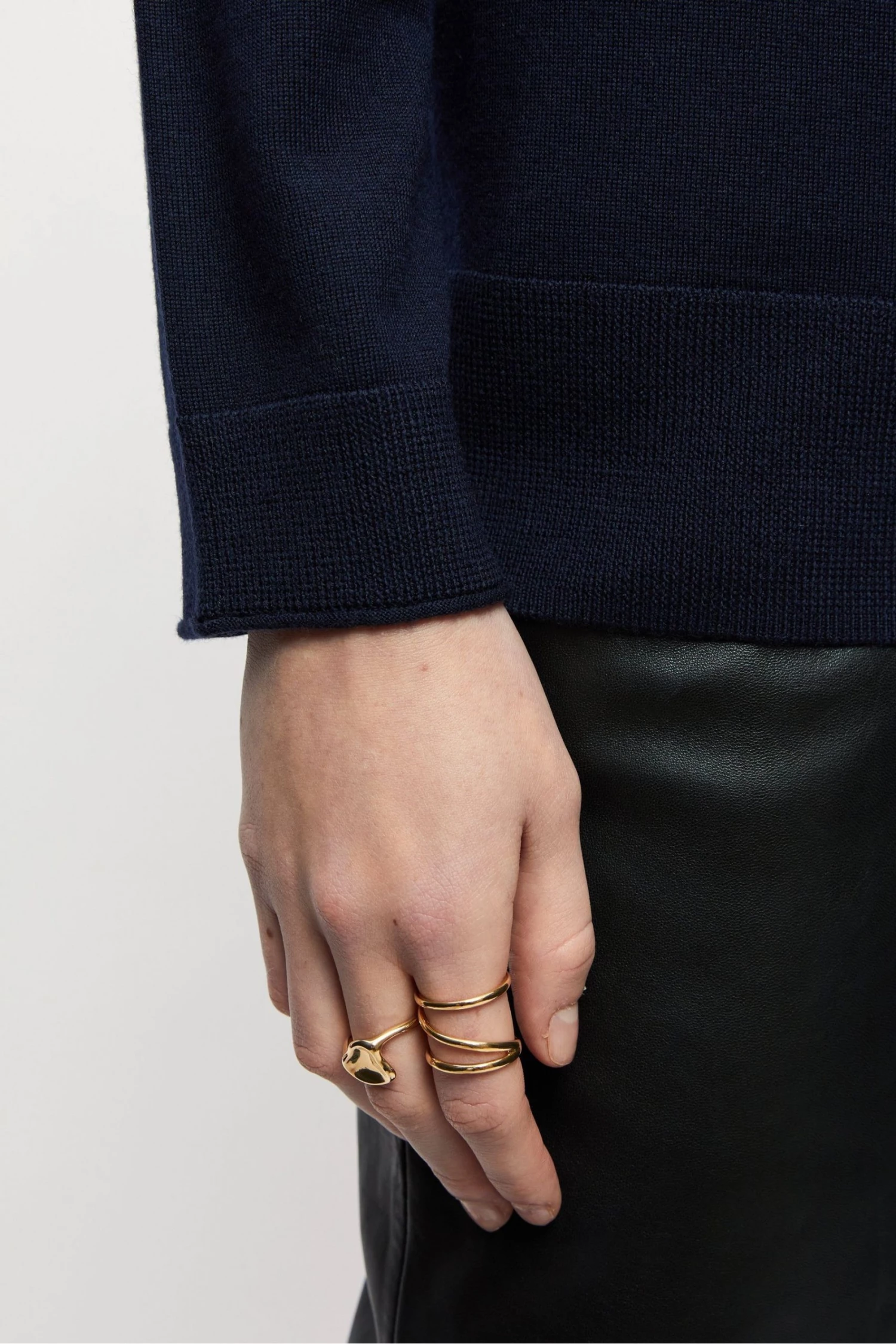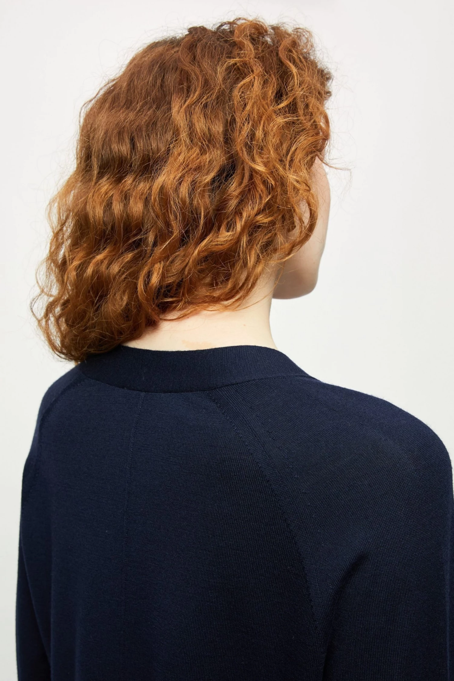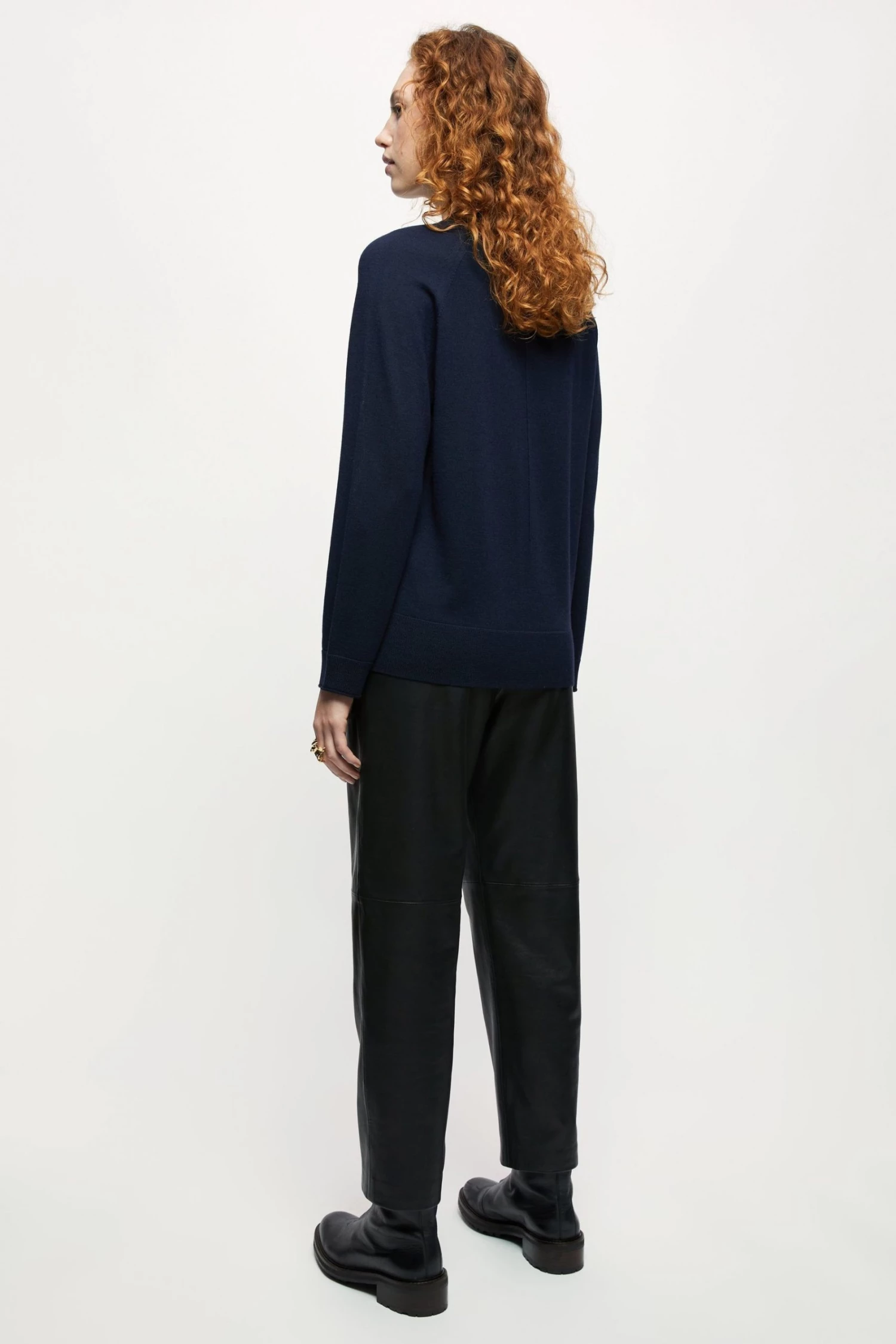 Slouchy V-neck jumper made from 100% ZQ Merino wool. Dropped shoulders, rolled edge cuffs and rib detail at the neckline and hem. Finished with exposed seam detail. Oversized fit for a warm and cosy feeling.