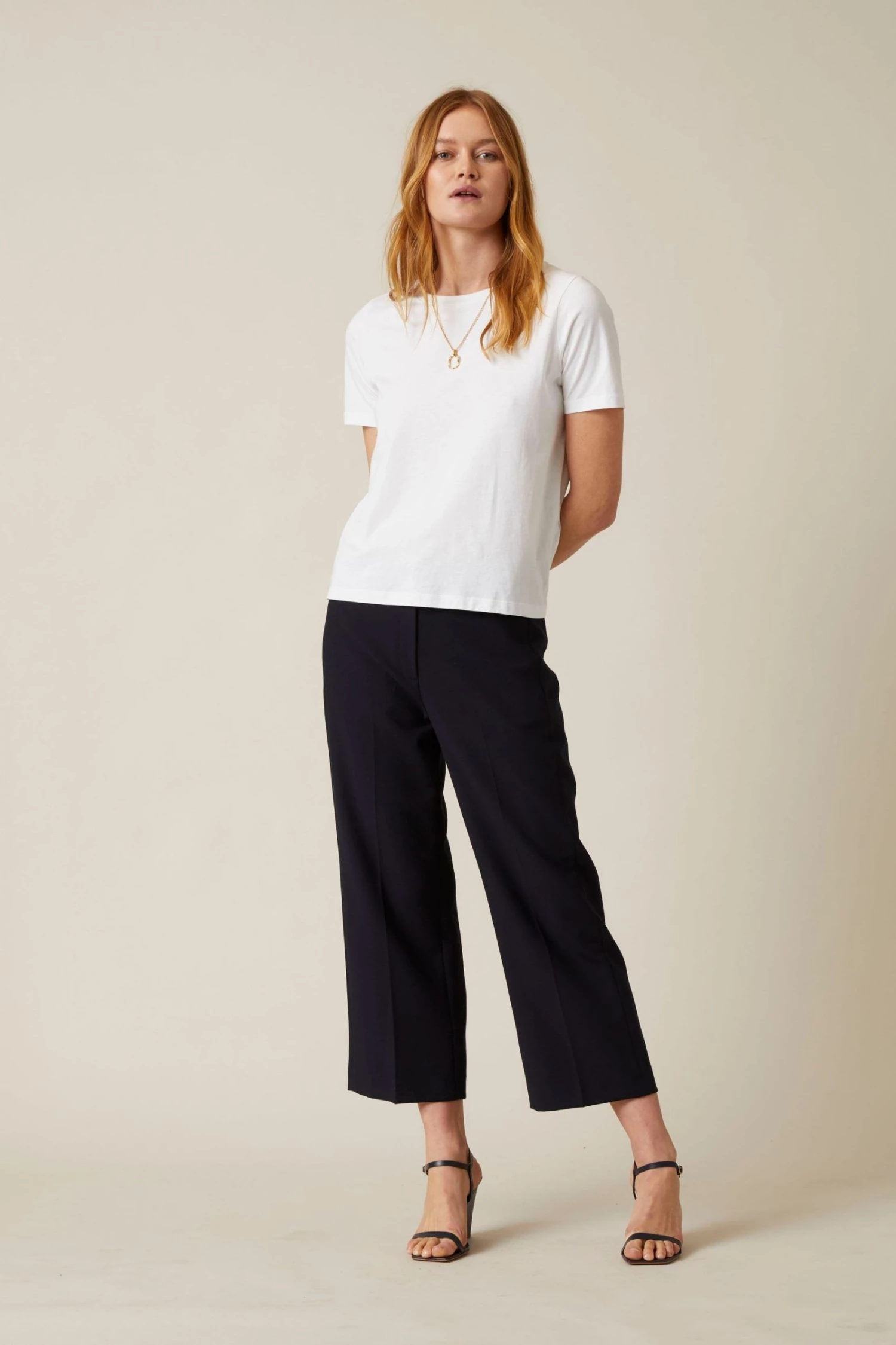 A flattering and cropped slim fit, our straight trousers are the must-have addition for your wardrobe. Designed with in seamed front pocket detailing, belt loops and a centrefront hook, bar and zip closure.
