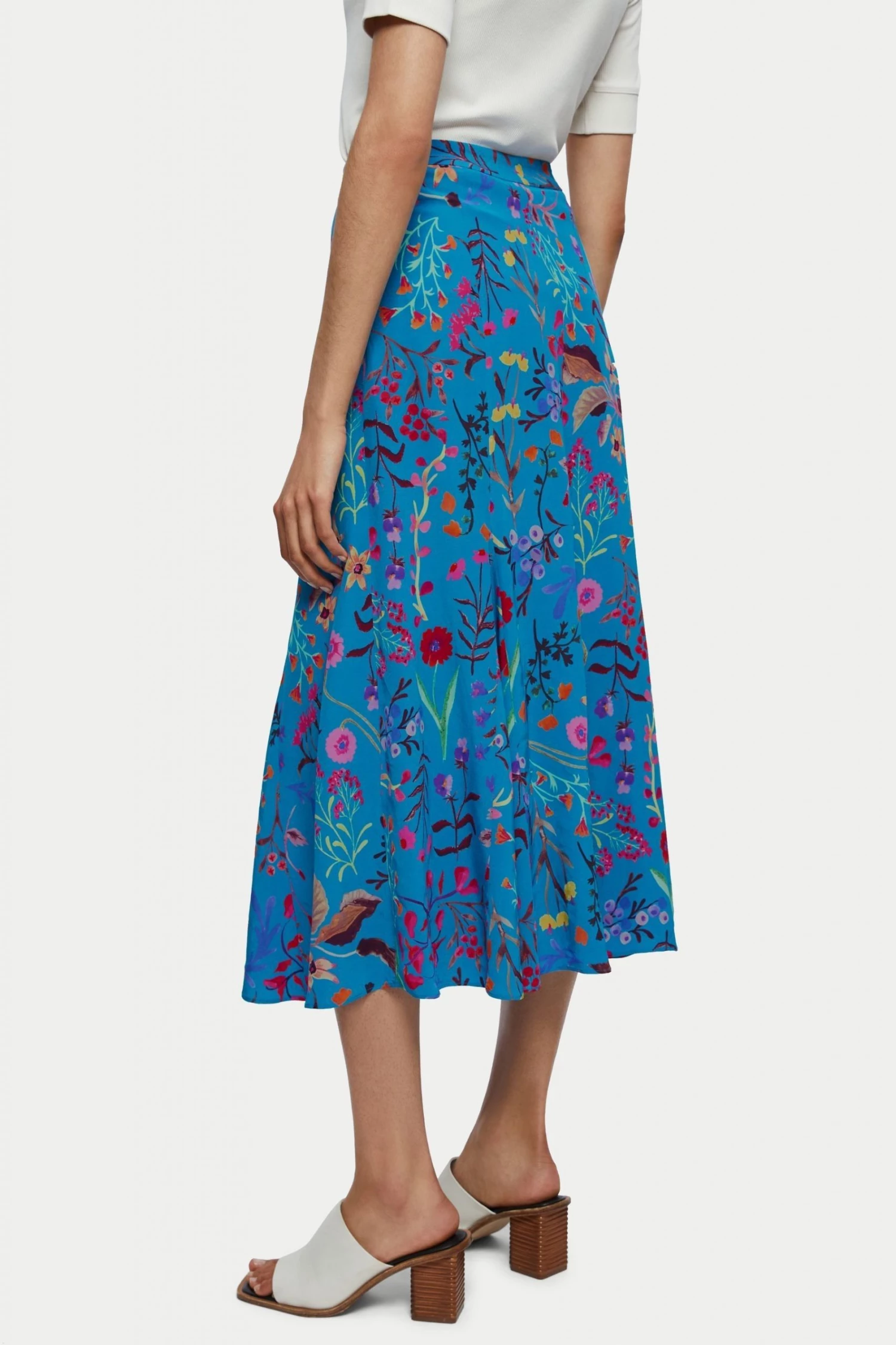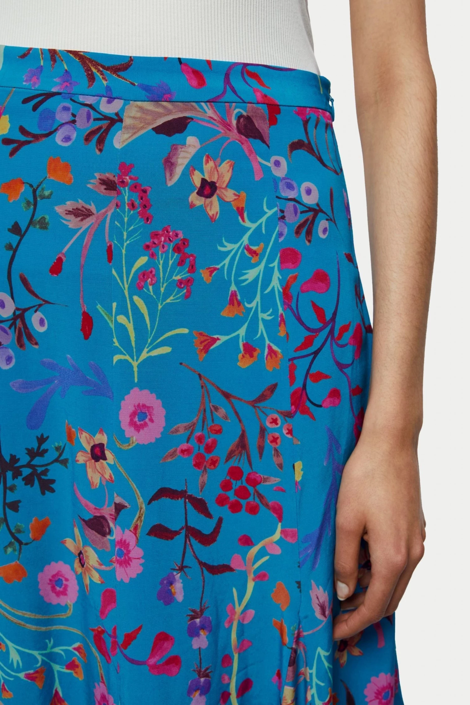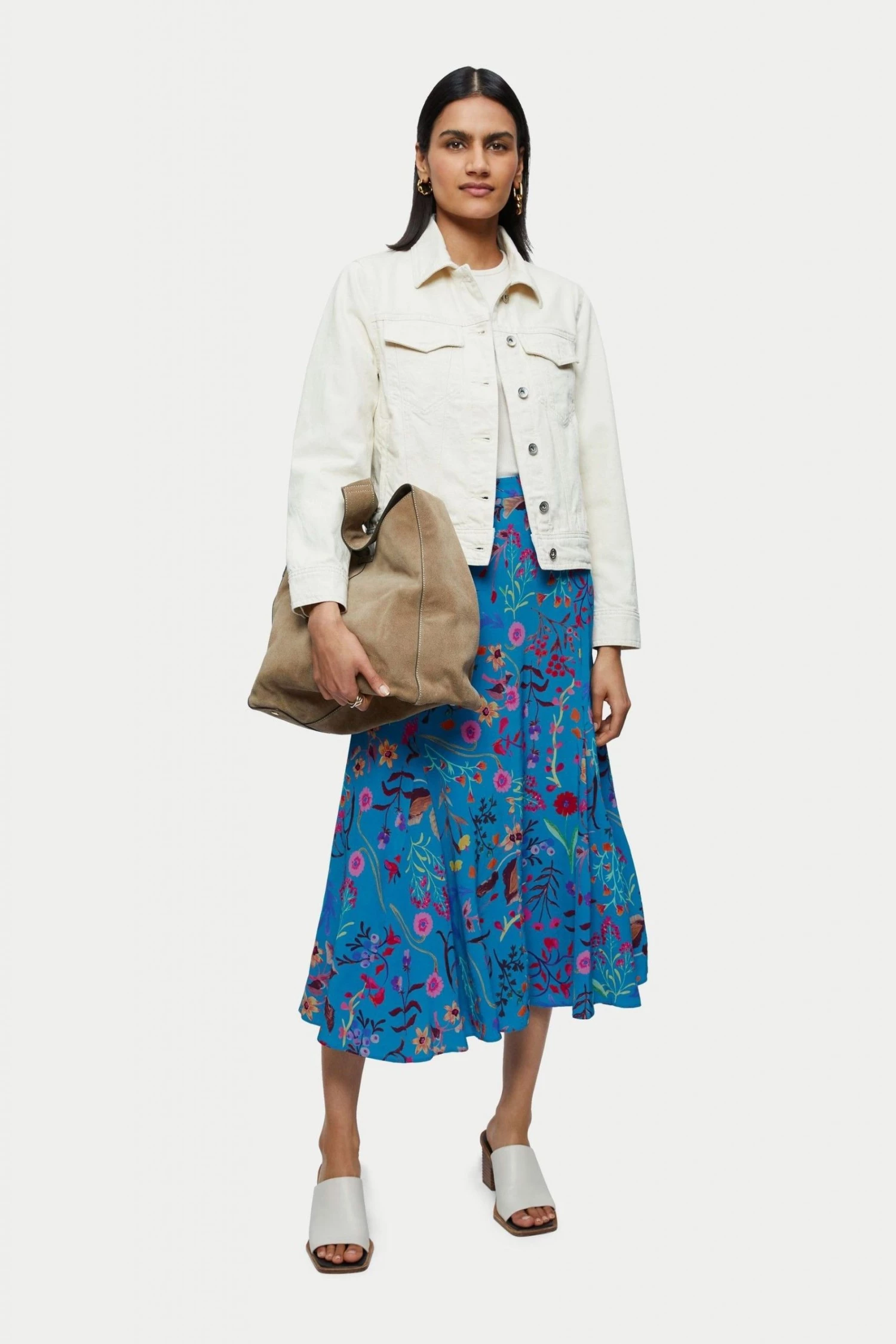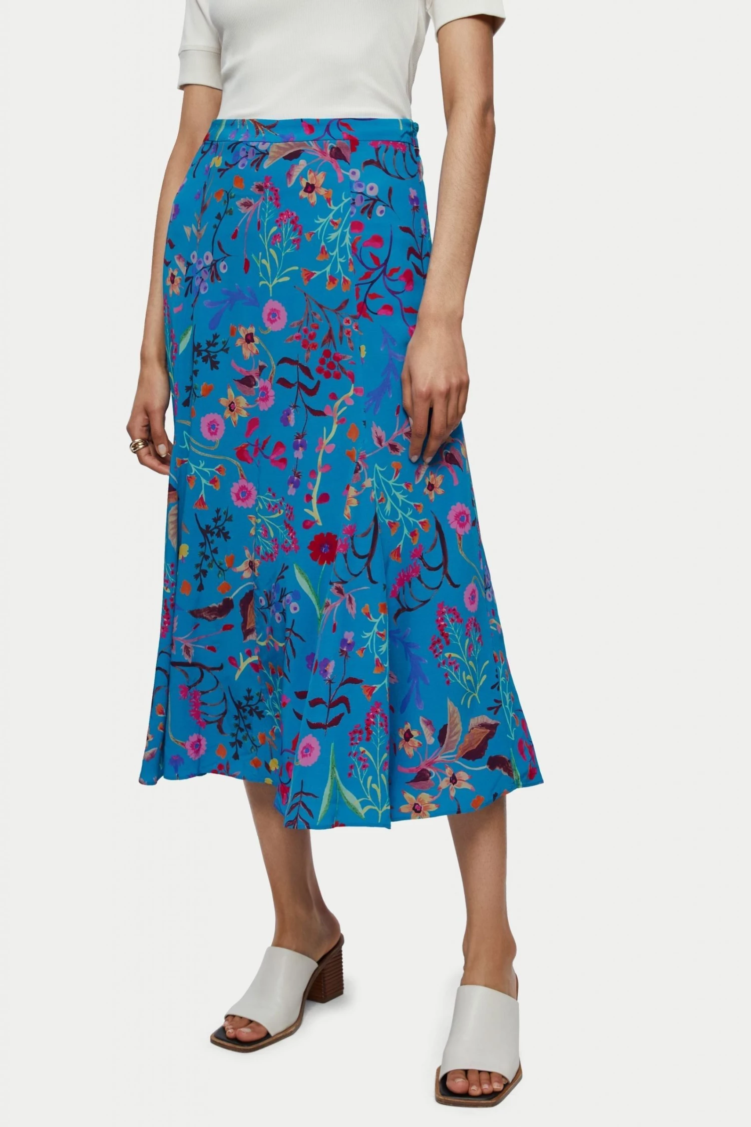 Exclusive Jigsaw print, this beautifully draped feminine skirt is cut in medium weight viscose. A full skirt with godet details, midi in length and side zip fastening.