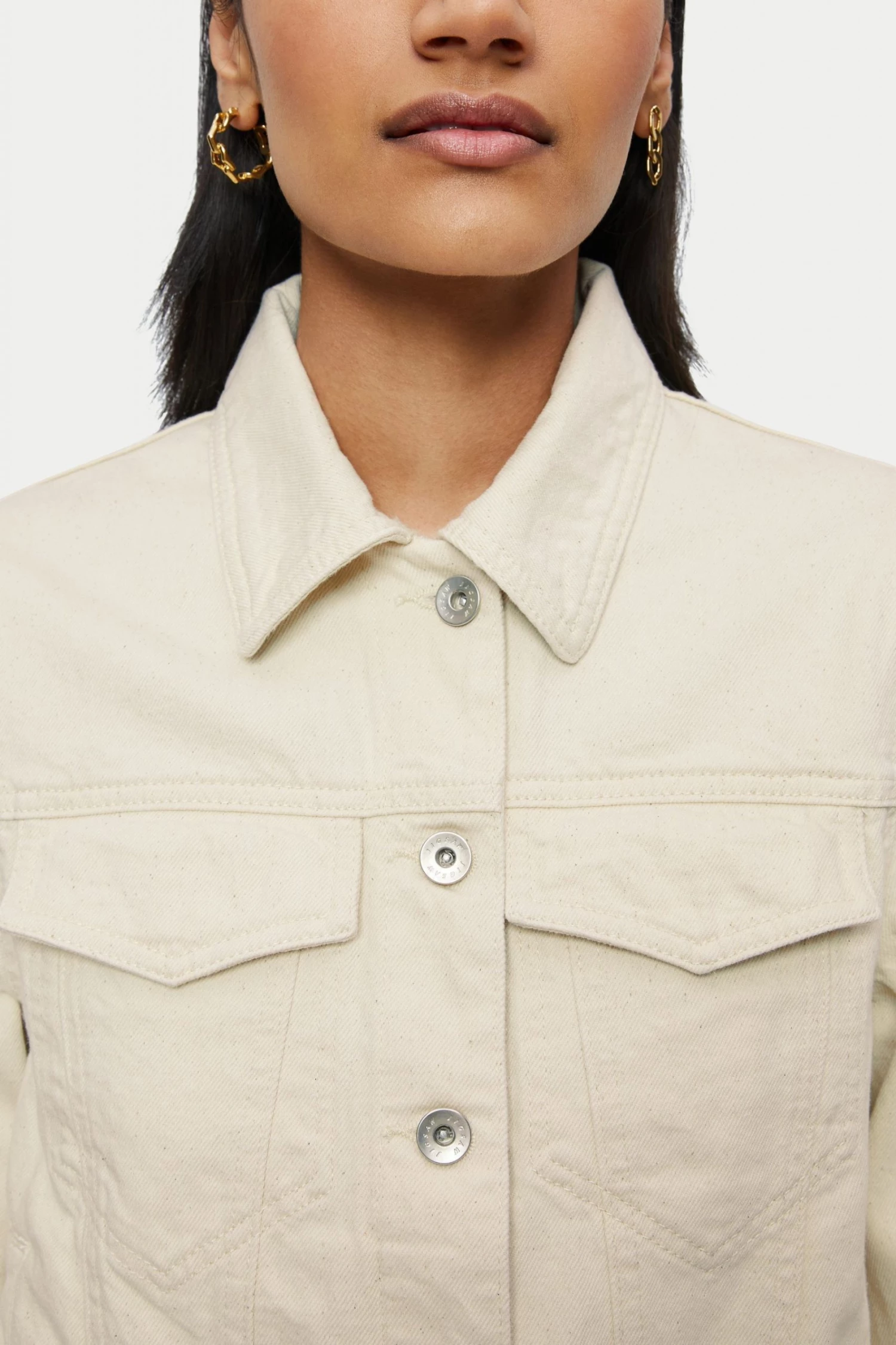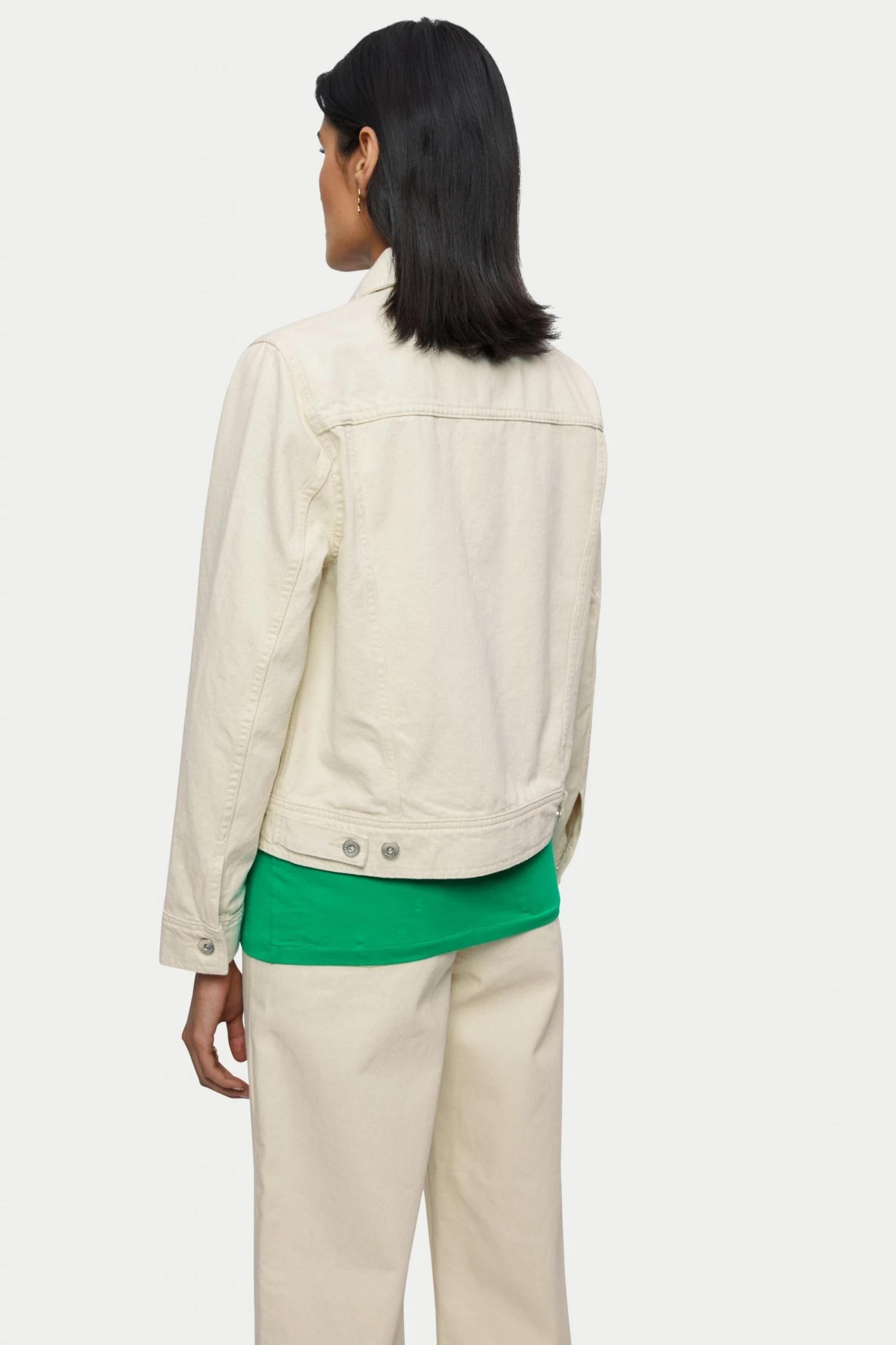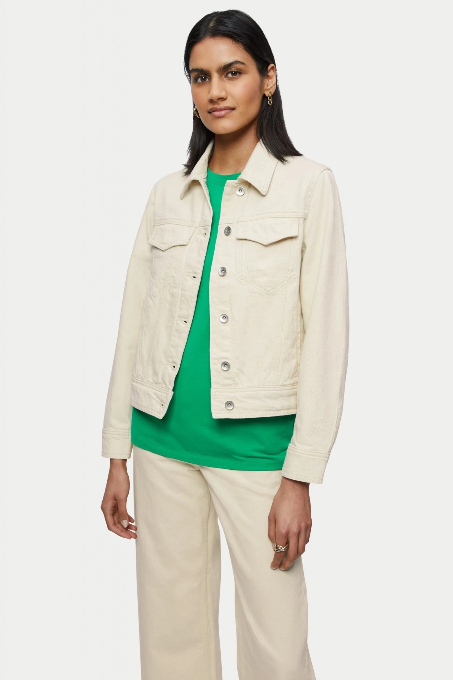 Authentic denim jacket in ethically sourced premium ecru cotton denim. Get the look and wear over Jigsaw’s printed tea dress or double up with Jigsaw’s jeans.