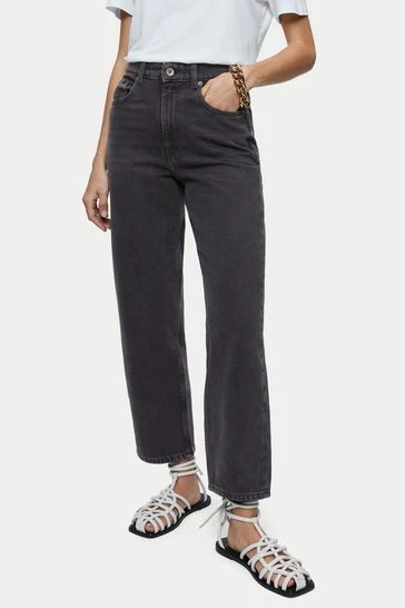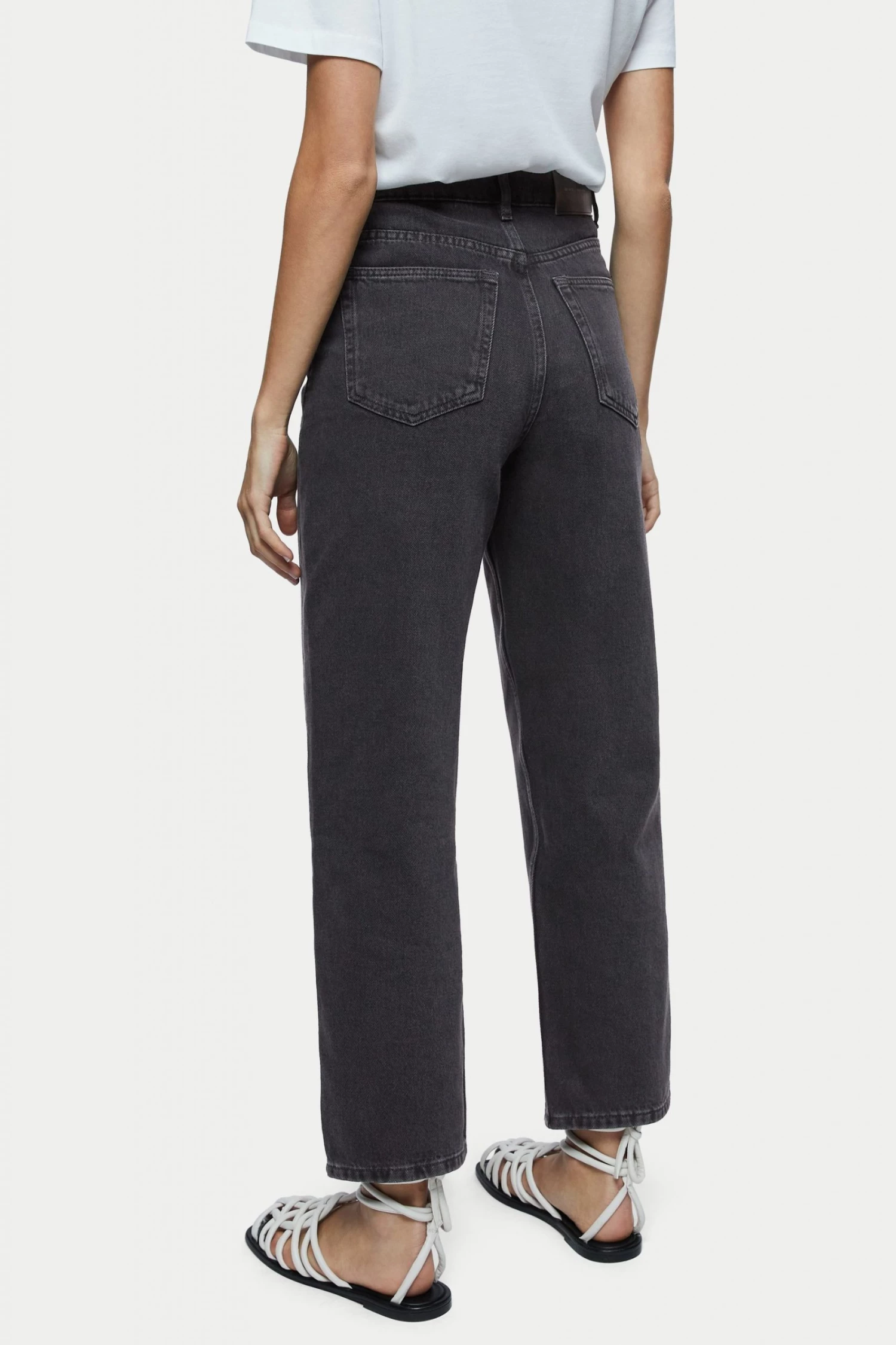 Premium soft fixed denim jean in a deep wash black finish. Mid-rise with a cropped loose leg. Featuring copper finished zip fly and riverts.