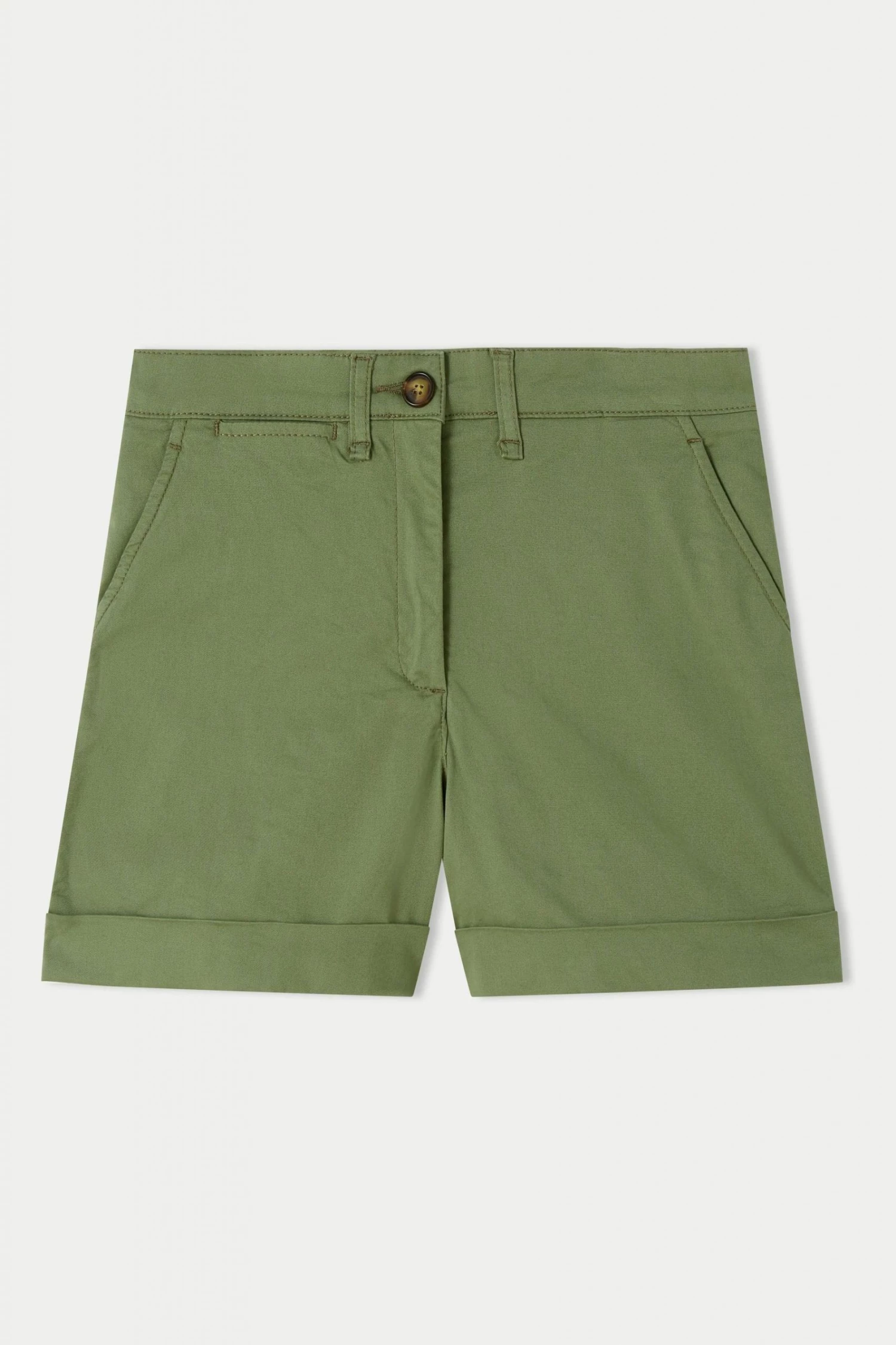 Bestselling classic chino shorts with side and back pockets and zip fly. Casual mid-thigh length, wear with trainers and a spring jacket.