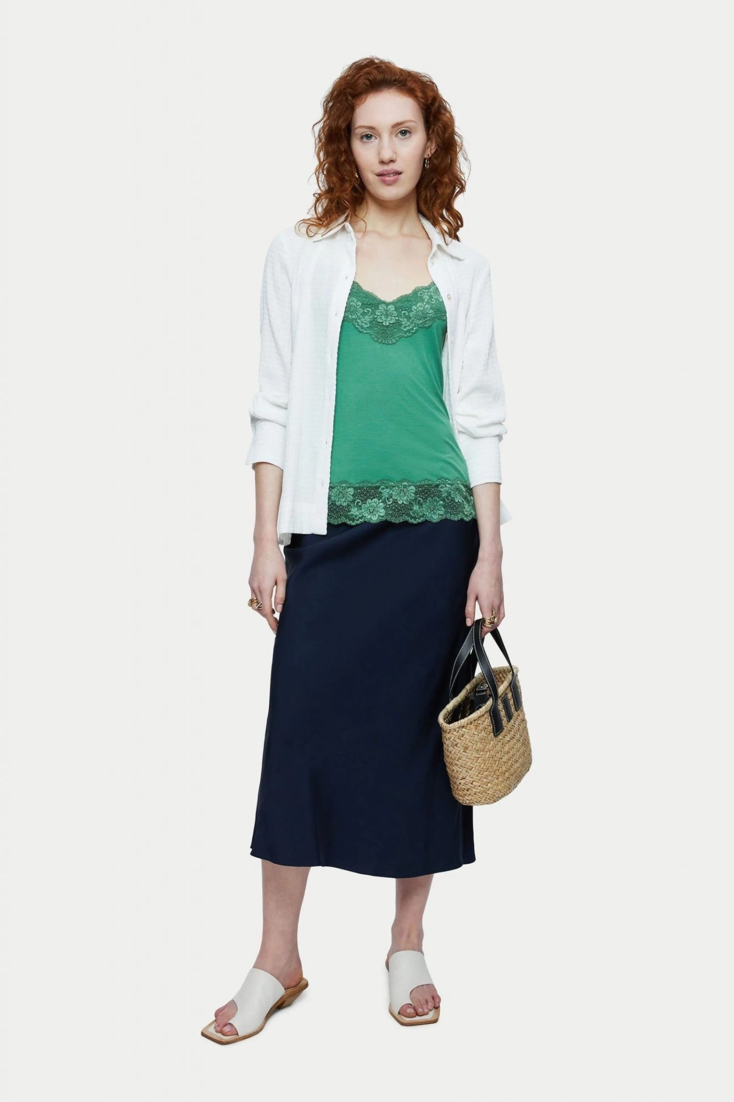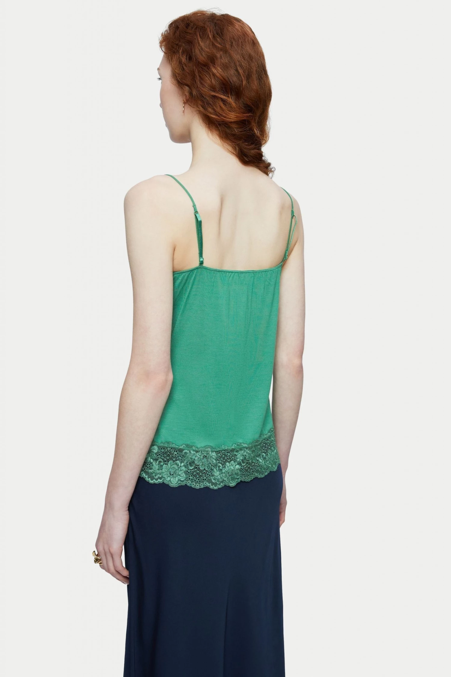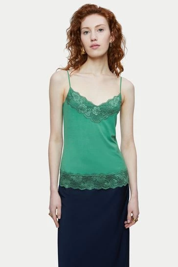 Featuring lace trim vest top. Soft Modal jersey. Best-selling style with slim adjustable straps. Layering piece.