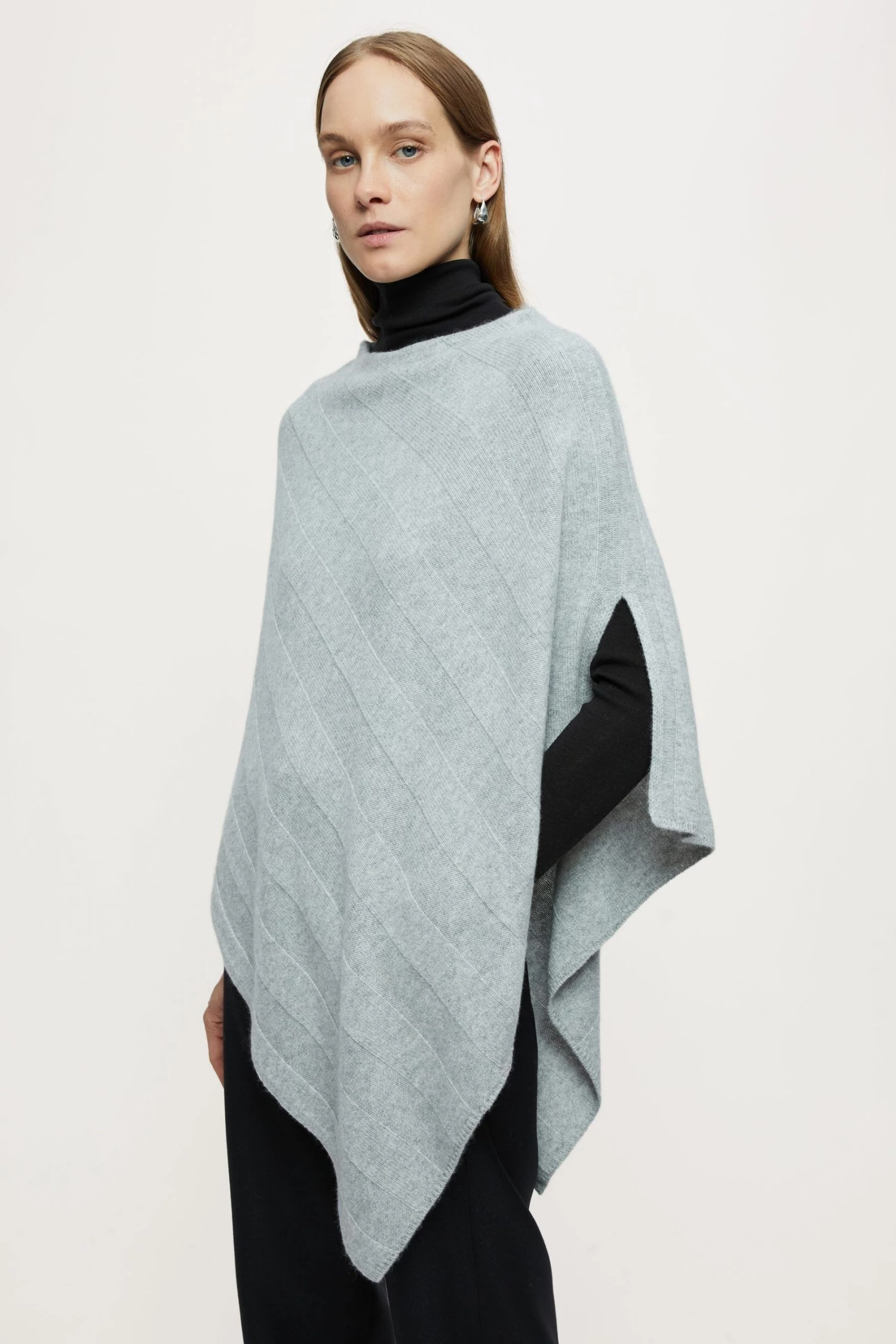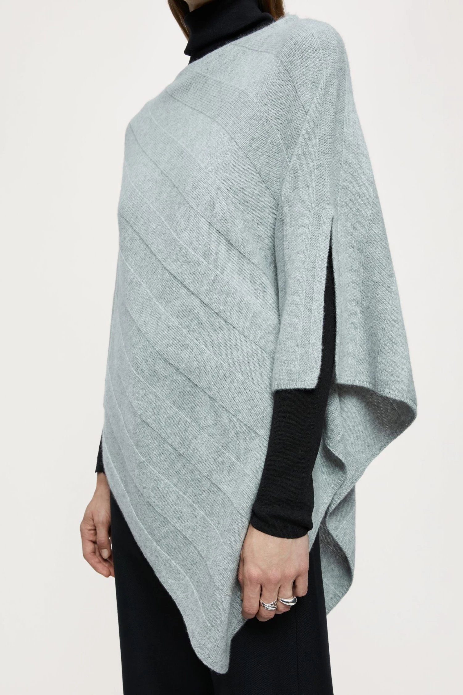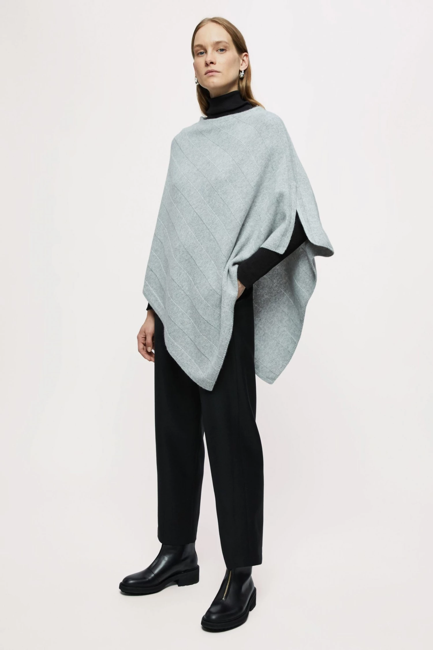 Pure cashmere poncho. Made from fully traceable Mongolian cashmere. Supersoft with a warm and lofty feel. Knitted with a flat rib pattern, this hat becomes a luxurious essential to elevate any outfit.