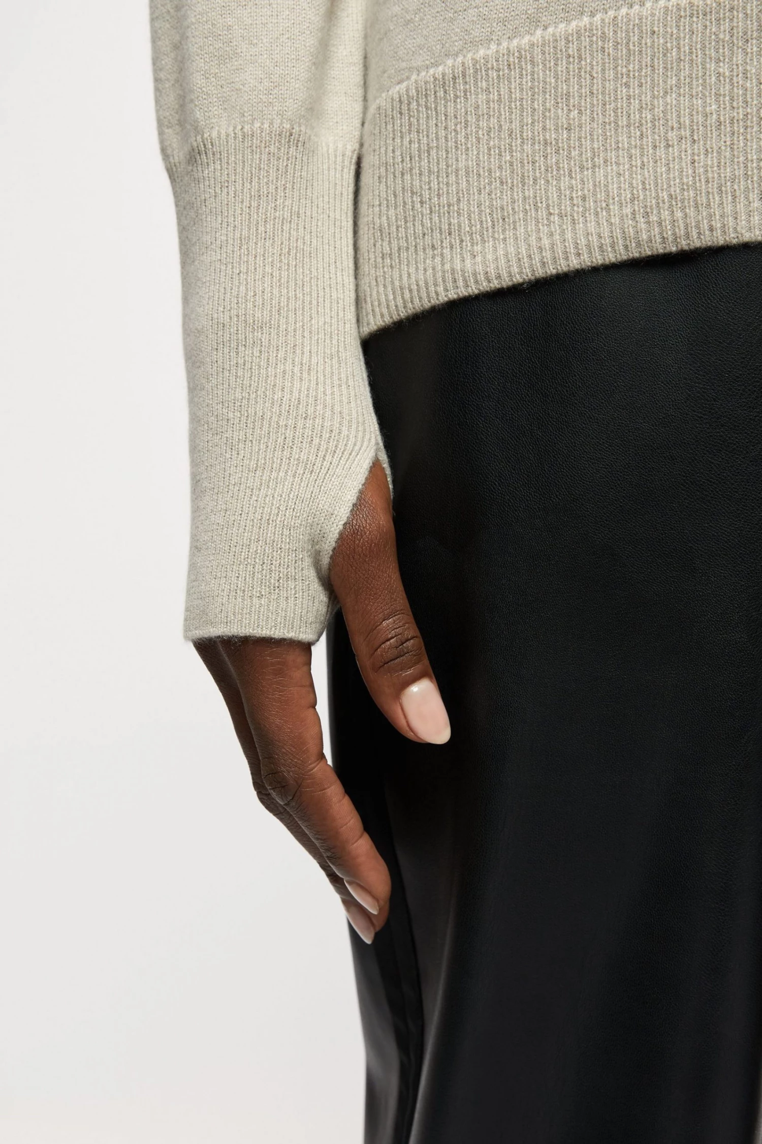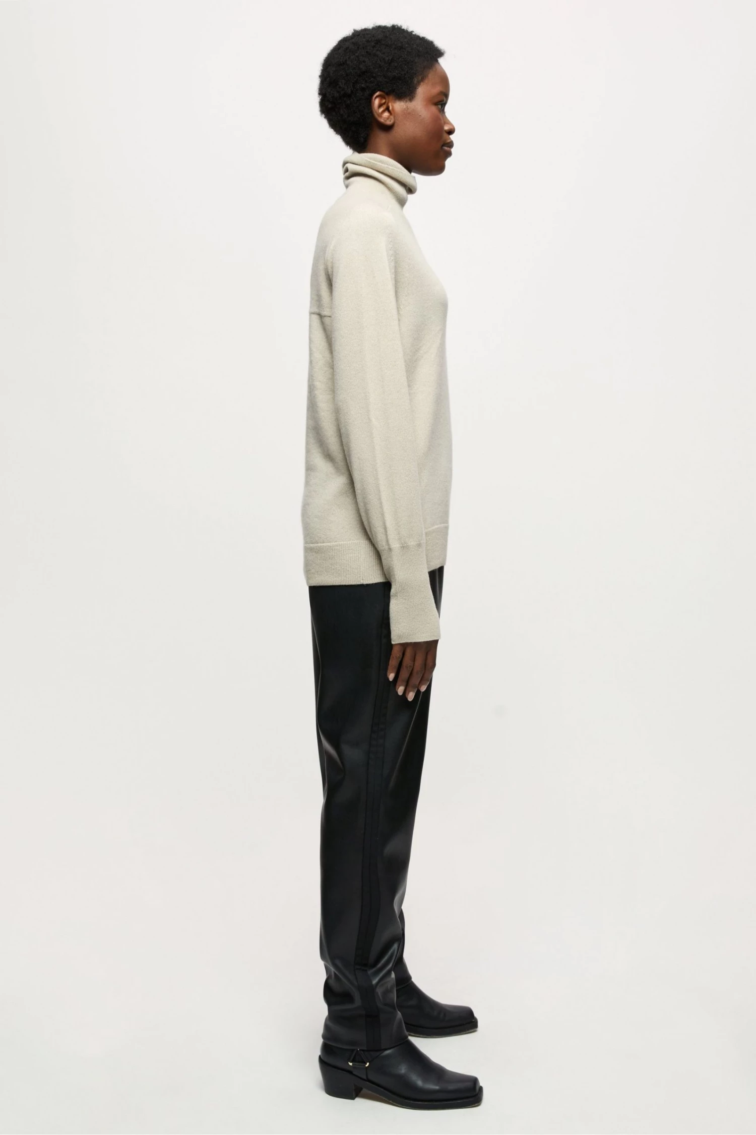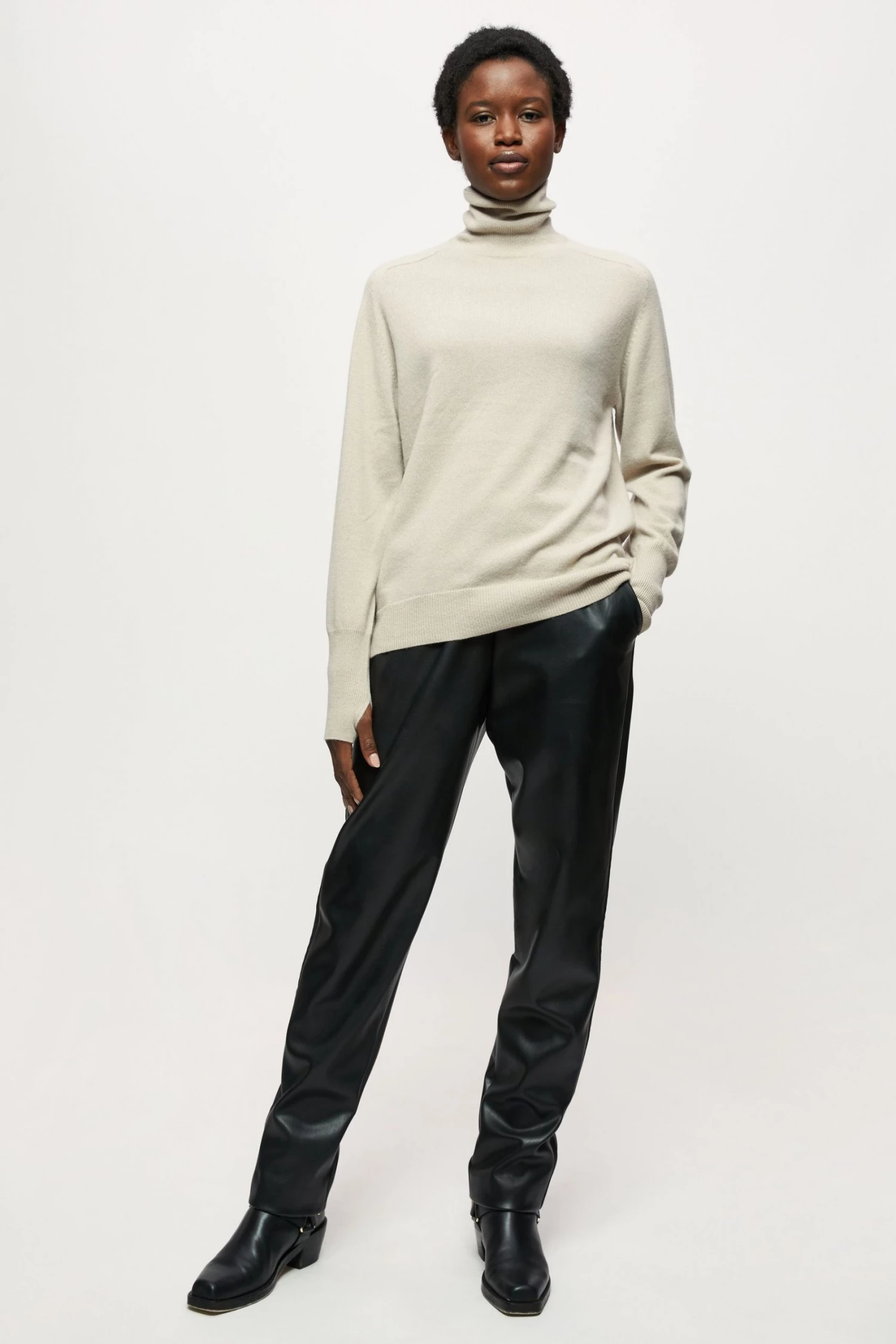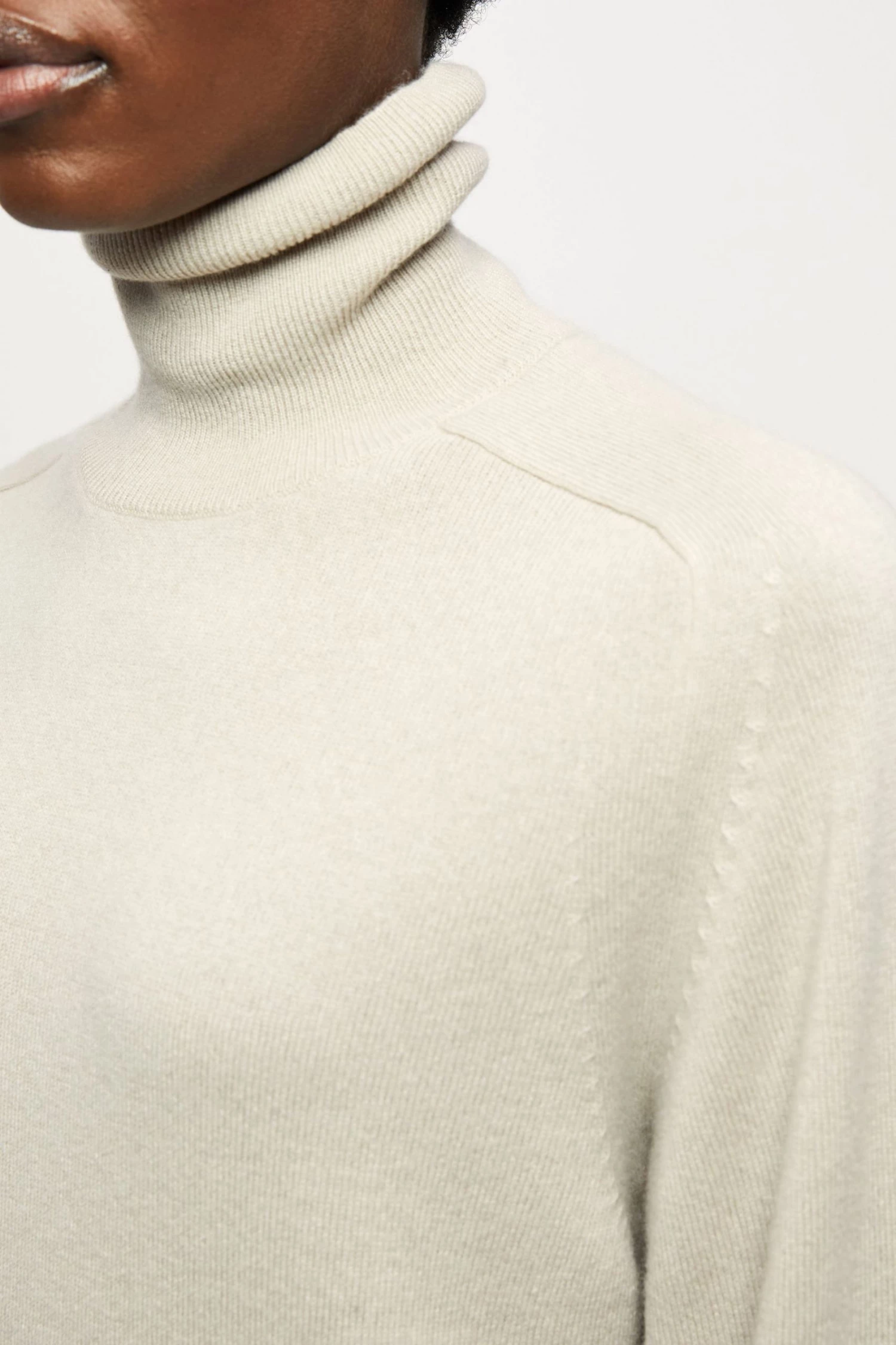 Cashmere polo neck jumper. A stylish update to a classic staple. Carefully constructed from 100% fully traceable Mongolian cashmere and designed to be worn for years to come. Loose relaxed fit with extra-long sleeves that you can wear folded back or pulled down over your hands, complete with thumb holes at the cuffs. Finished with crossed seam detail at the back.