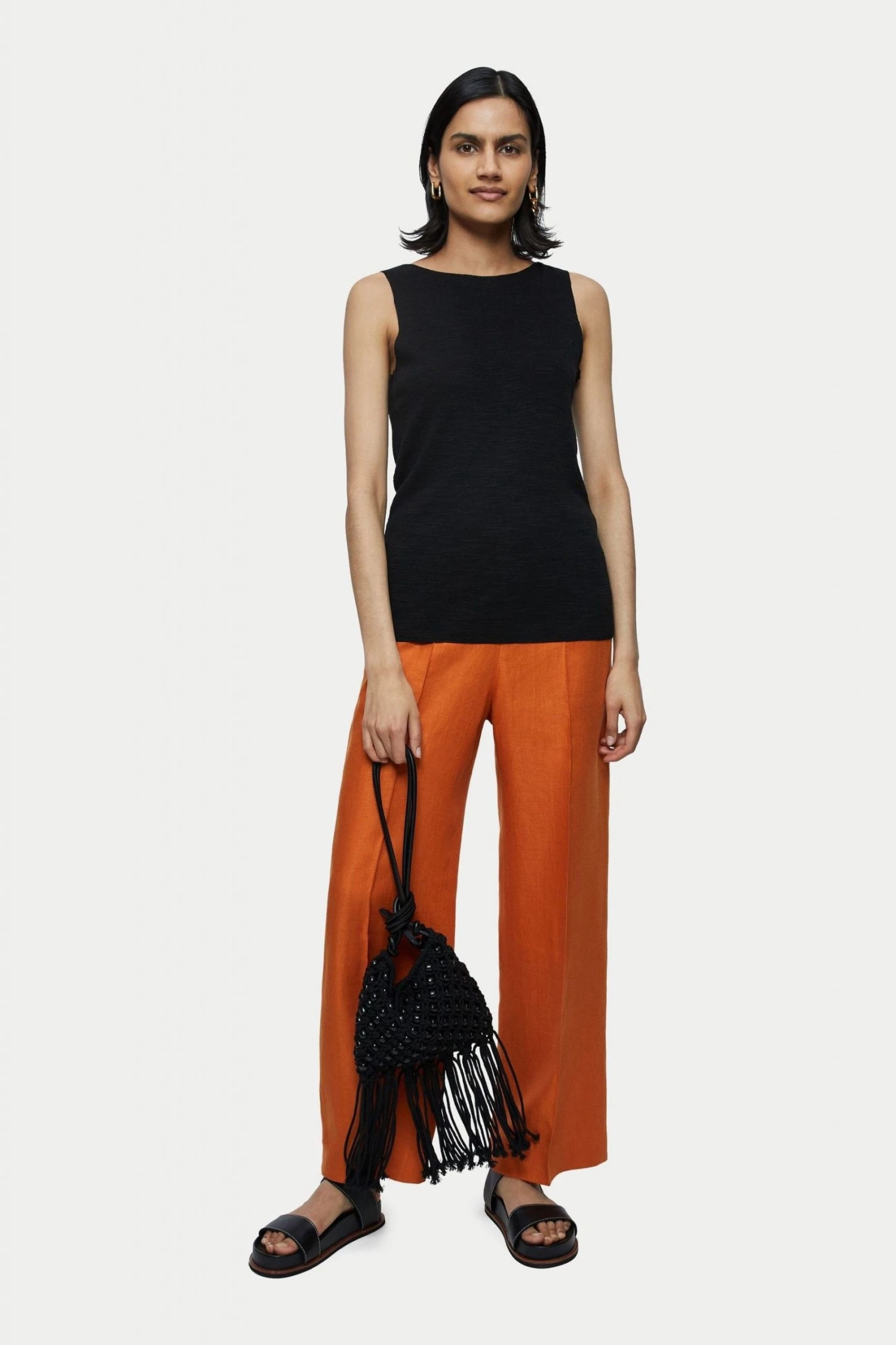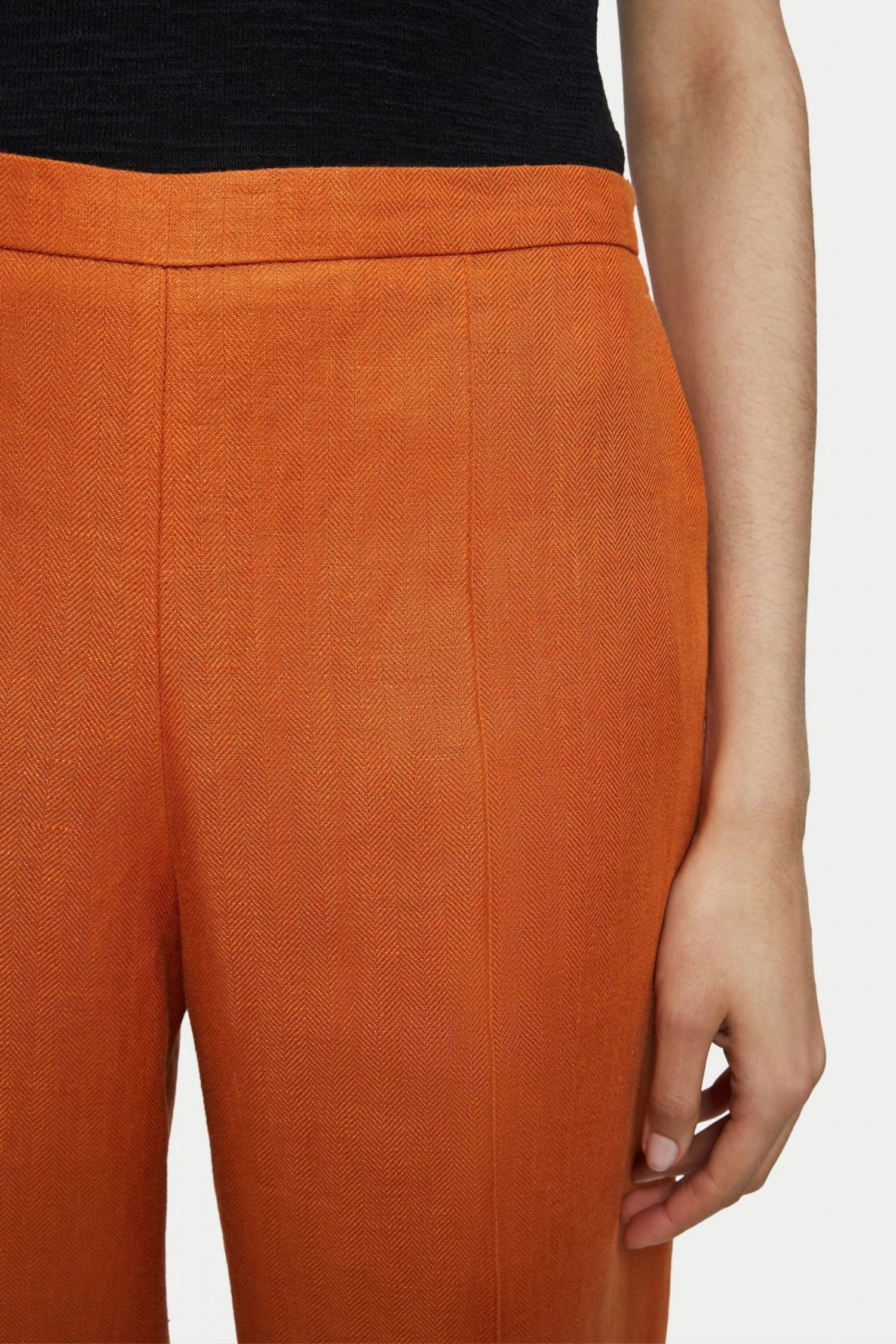 Cropped palazzo trouser in Irish herringbone linen. Relaxed fit with an elastic back waistband and practical side pockets. A beautiful smart casual trouser, style with trainers or sandals.