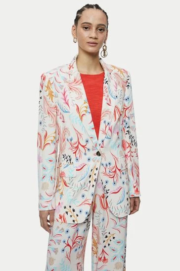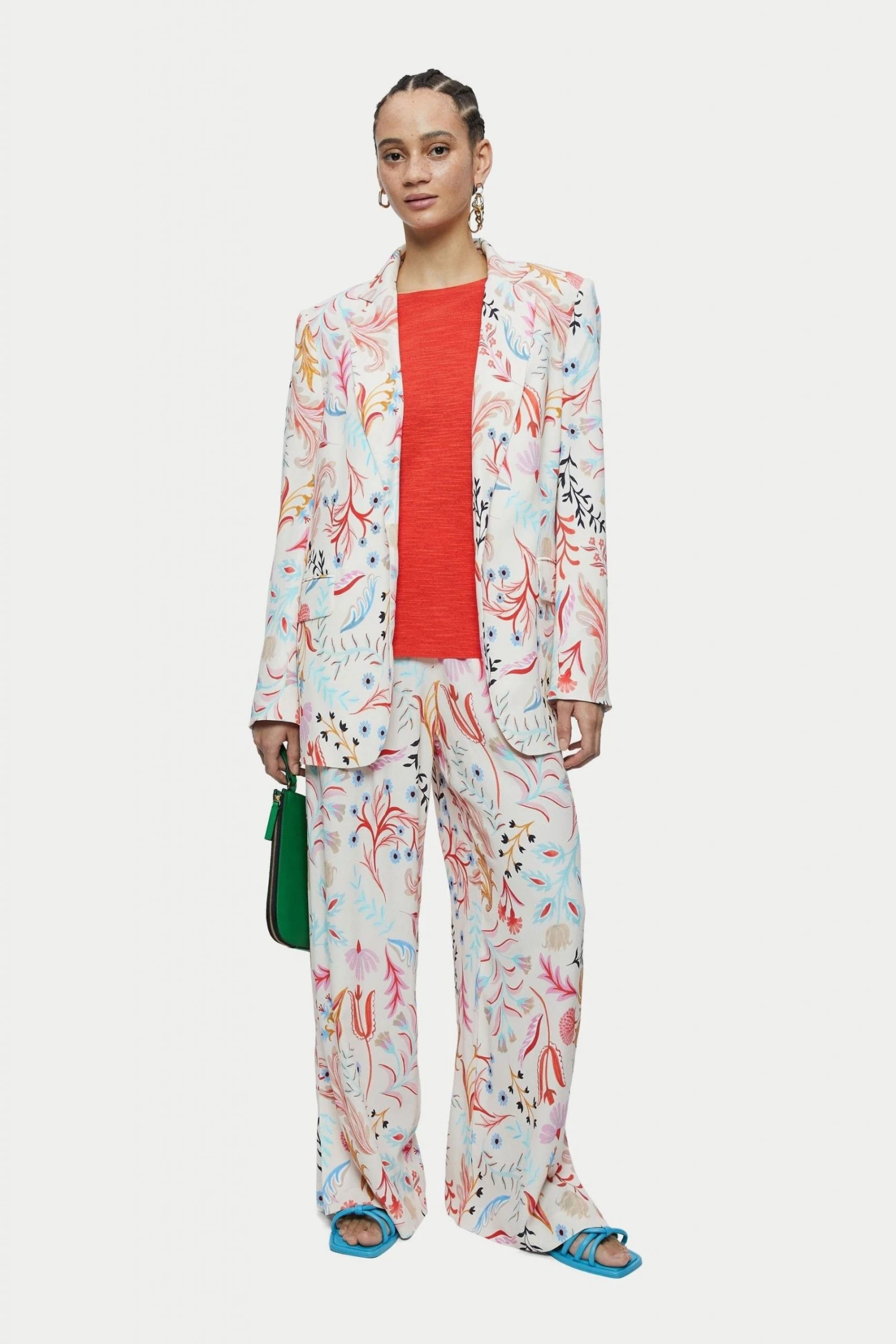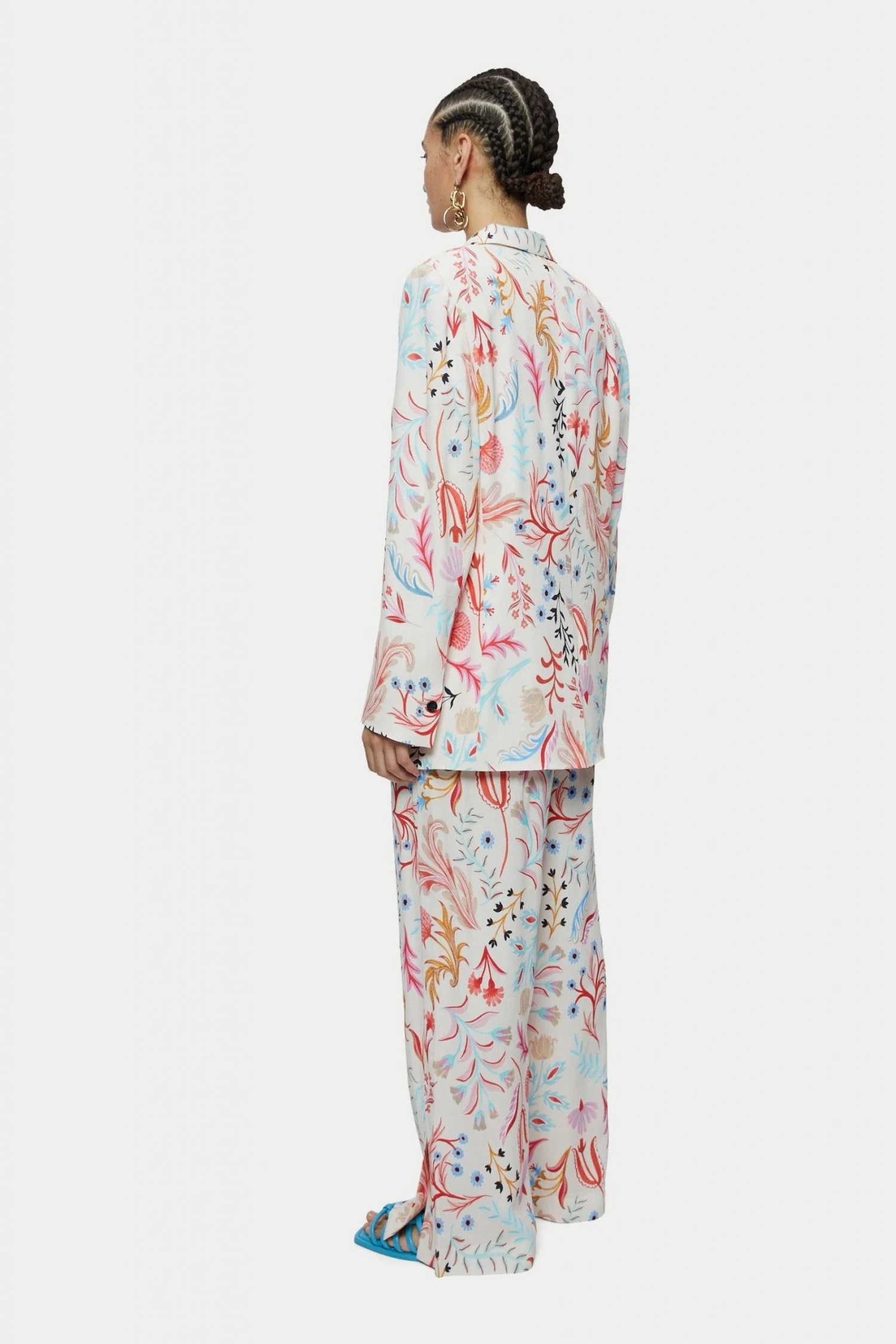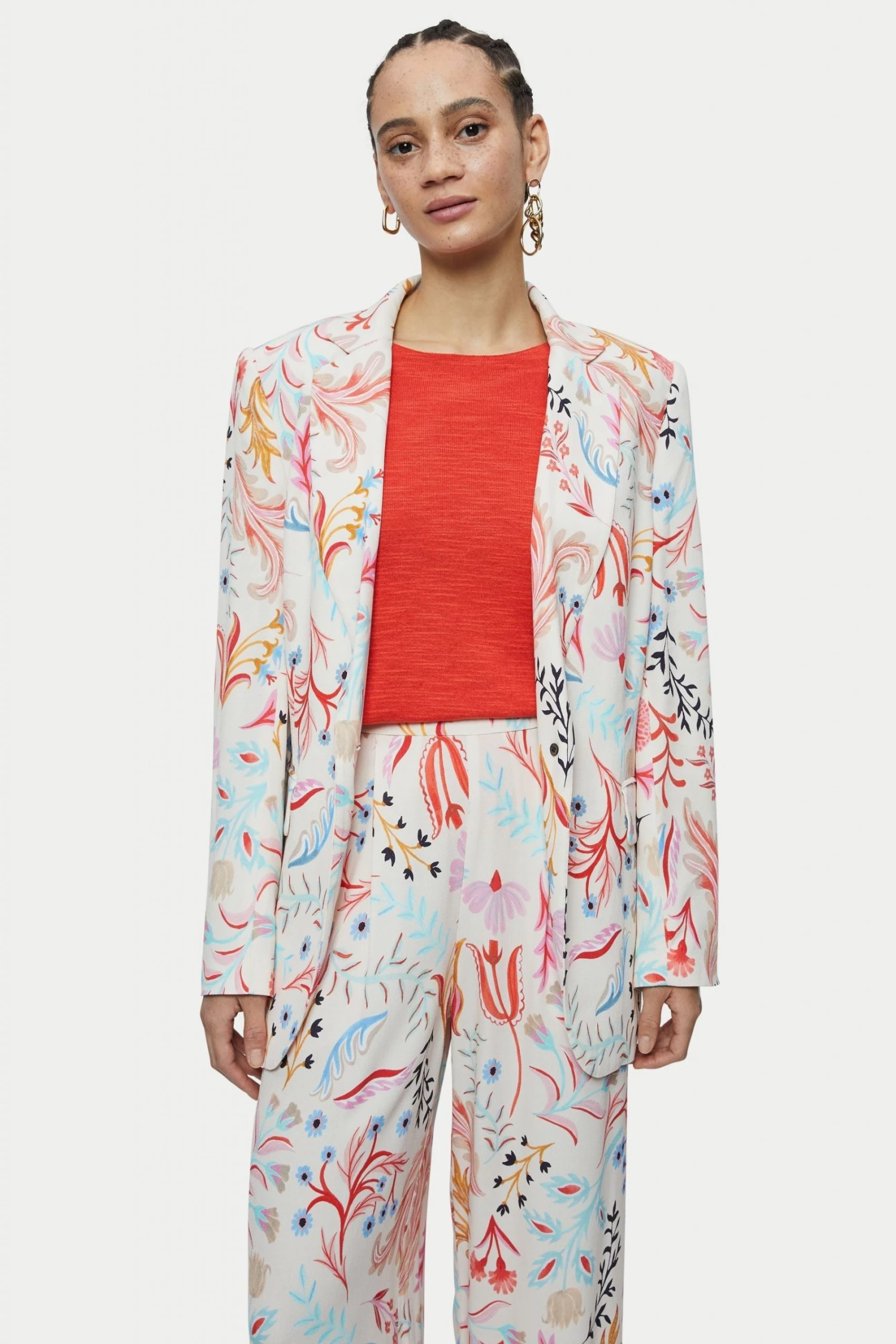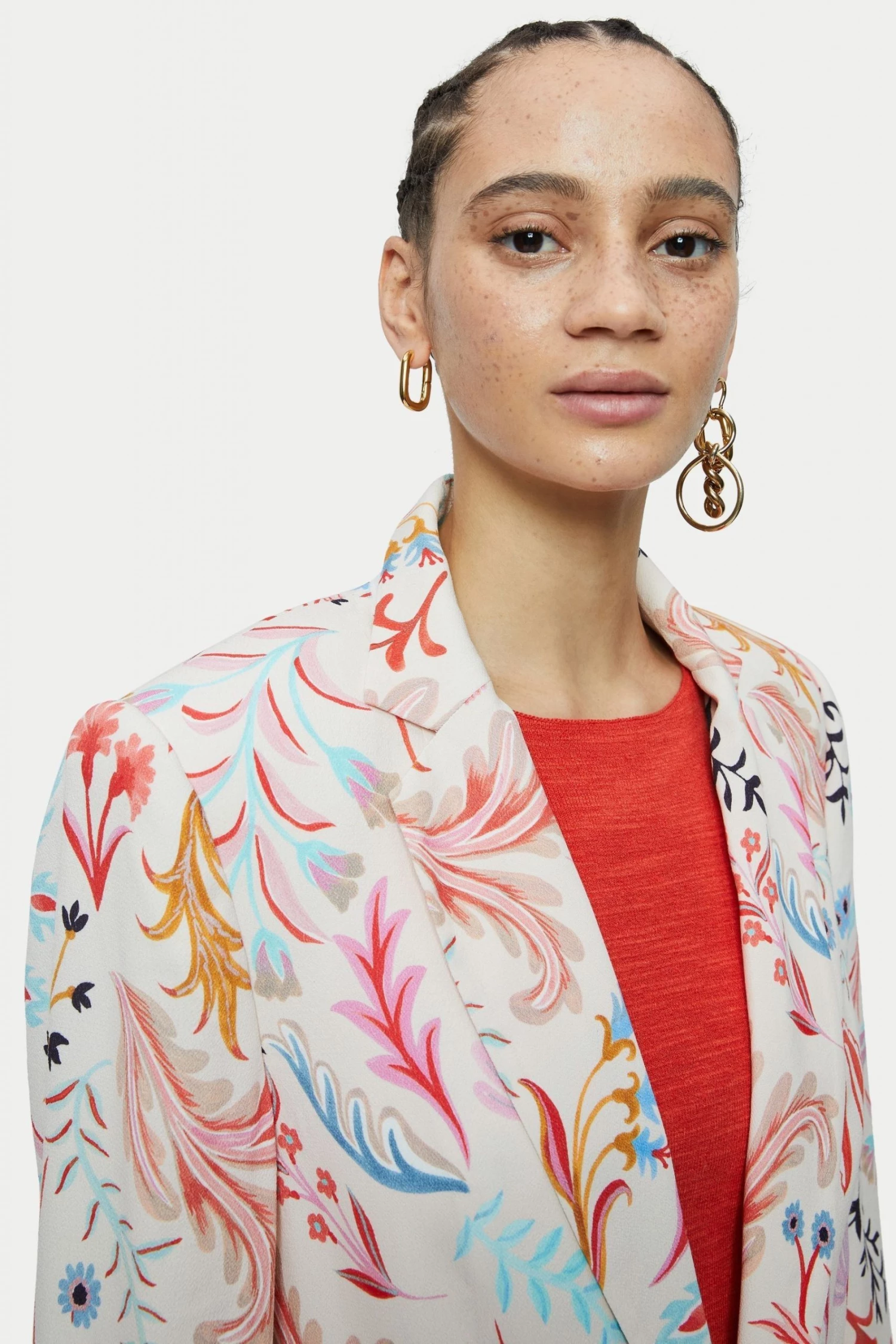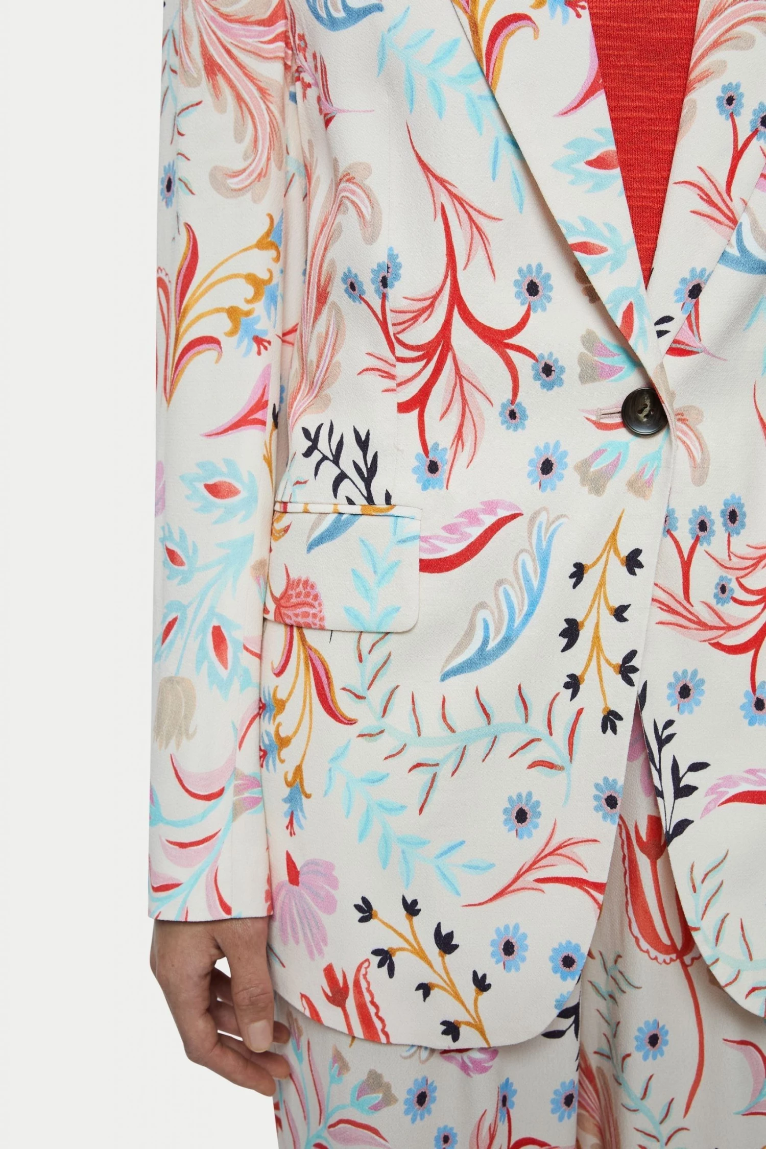 Relaxed tailored blazer in Sunkissed Floral print on fluid viscose crepe. Featuring a single-breasted front with button closure, back vent, jet flap pockets and notch lapel. Perfect for light layering. Style with linen or as a suit.