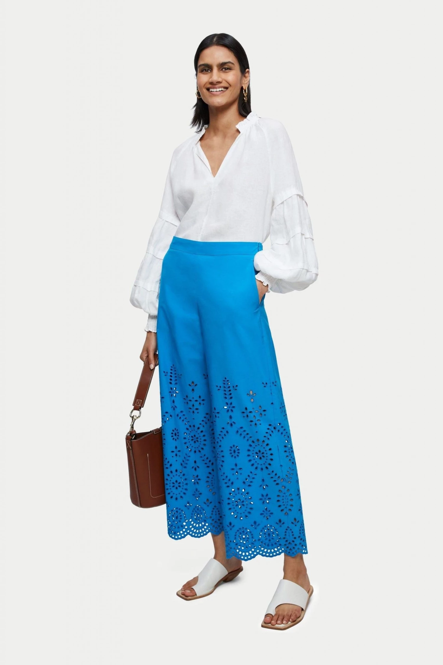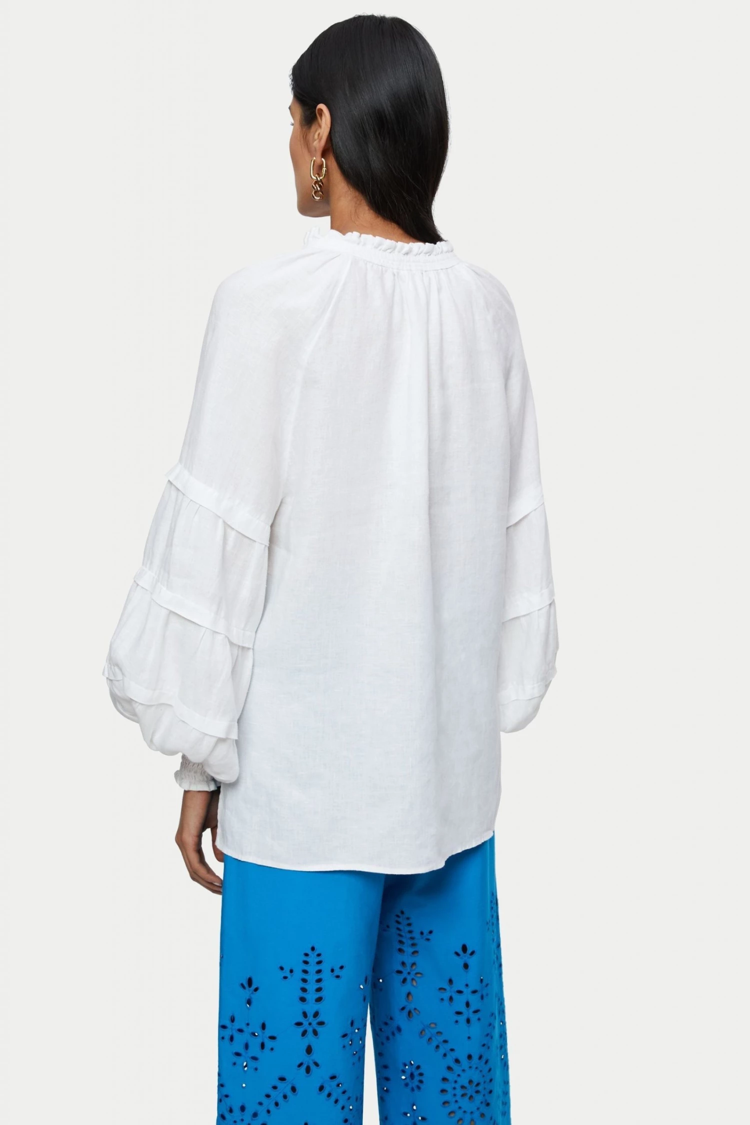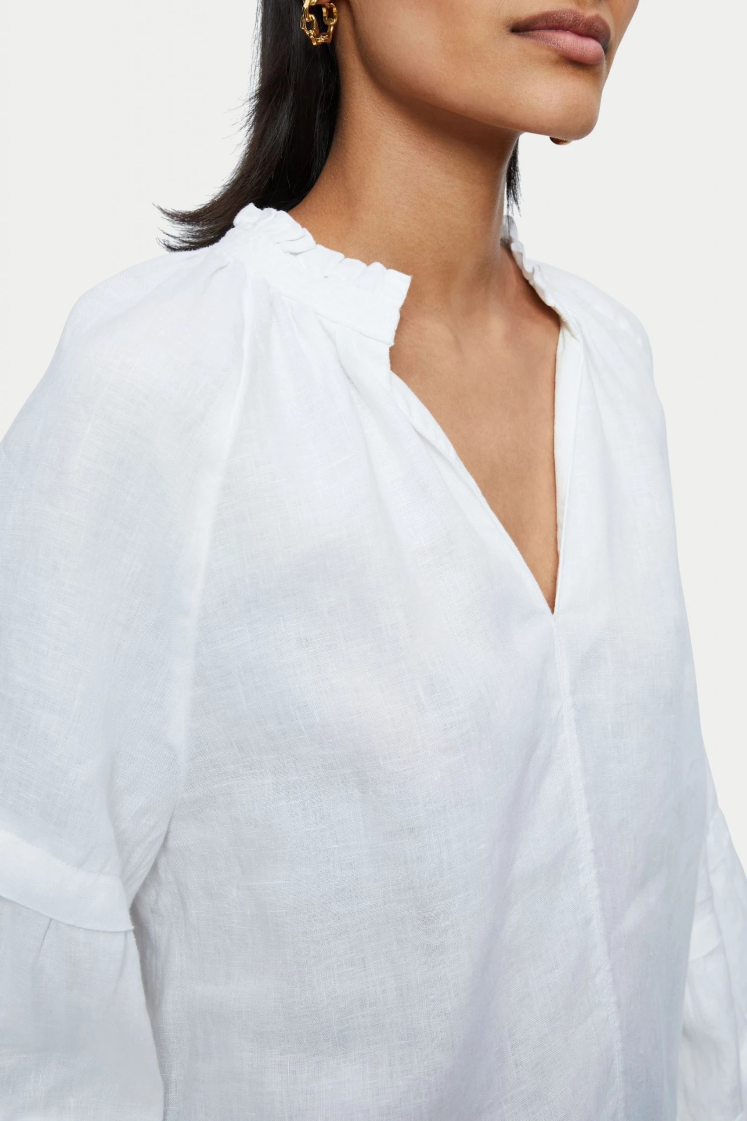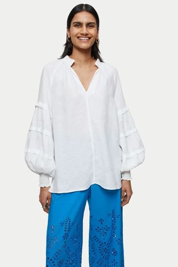 Jigsaw White Light Linen Pleat Detail Top